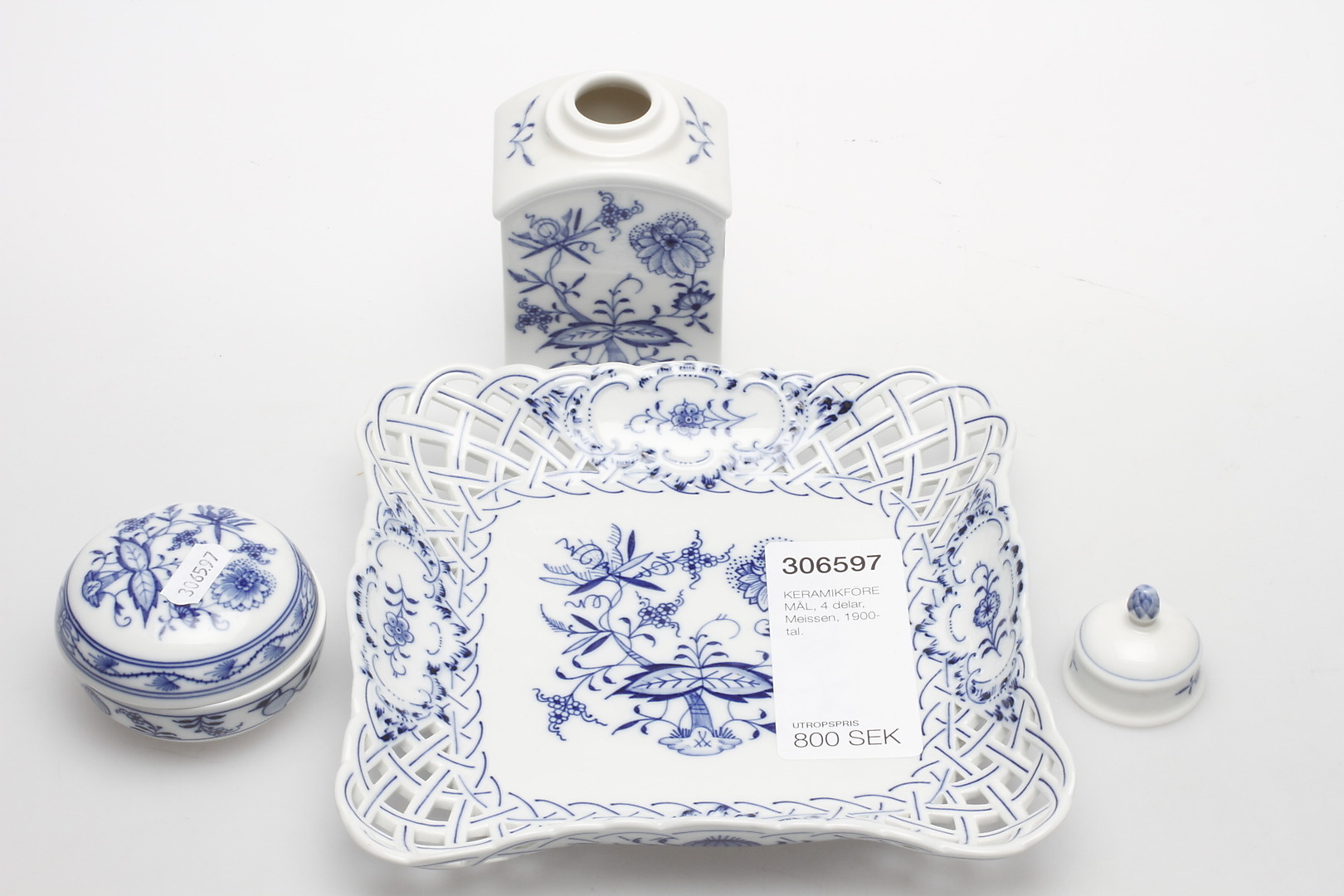 306597. KERAMIKOBJEKTE, 4 Teile, Meissen, 20. Jahrhundert.