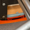 Untergestell aus verchromtem Stahlrohr. Stoffbezug in orange.