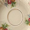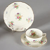 Verschleiß, Abnutzung am Goldrand, überall Risse in einer Kaffee-Untertasse, Deckel innen beschädigt.