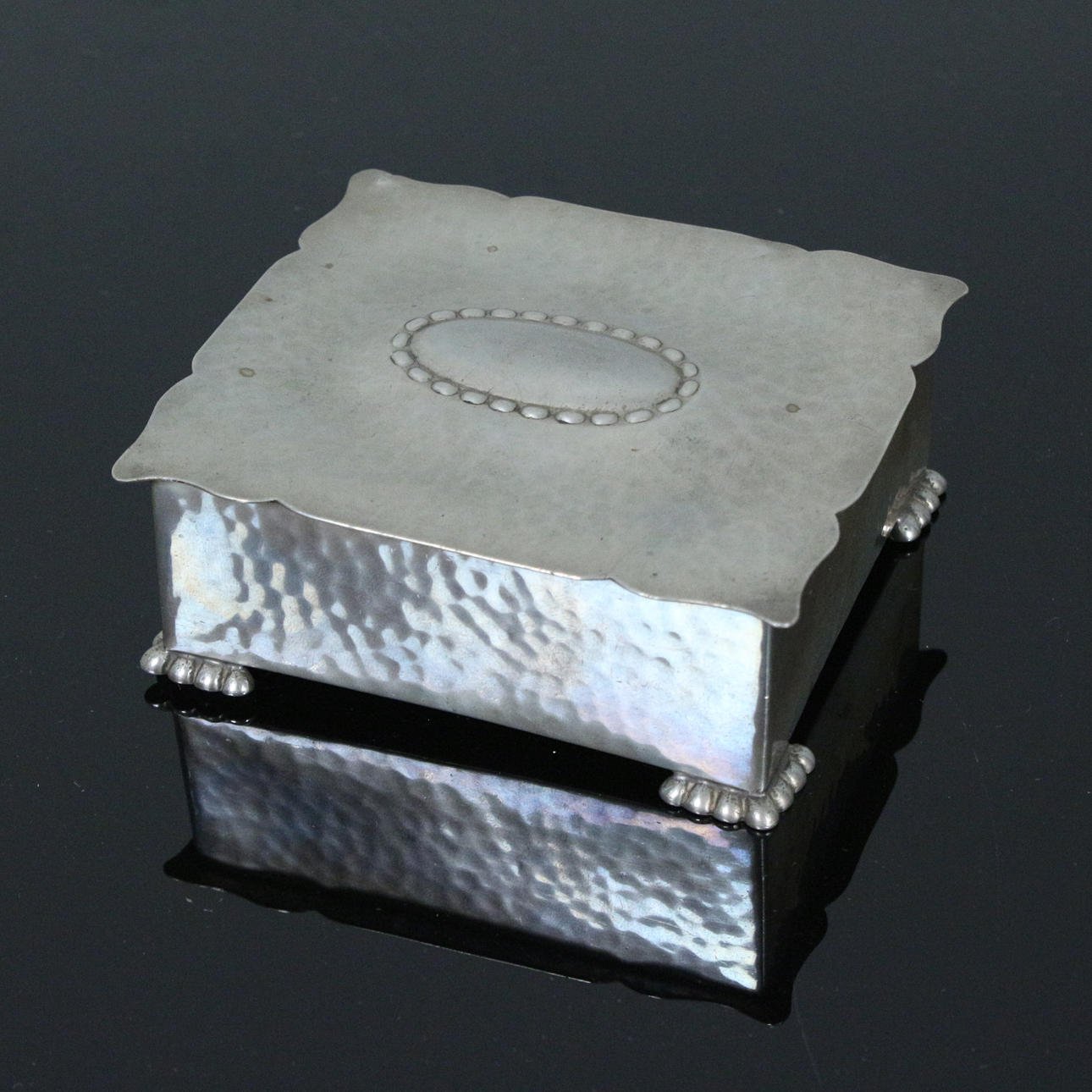 Küster-Perry, Schatulle / Schmuckdose, Metall, gehämmert, Holz, unterseitig mit Herstelleretikett versehen,