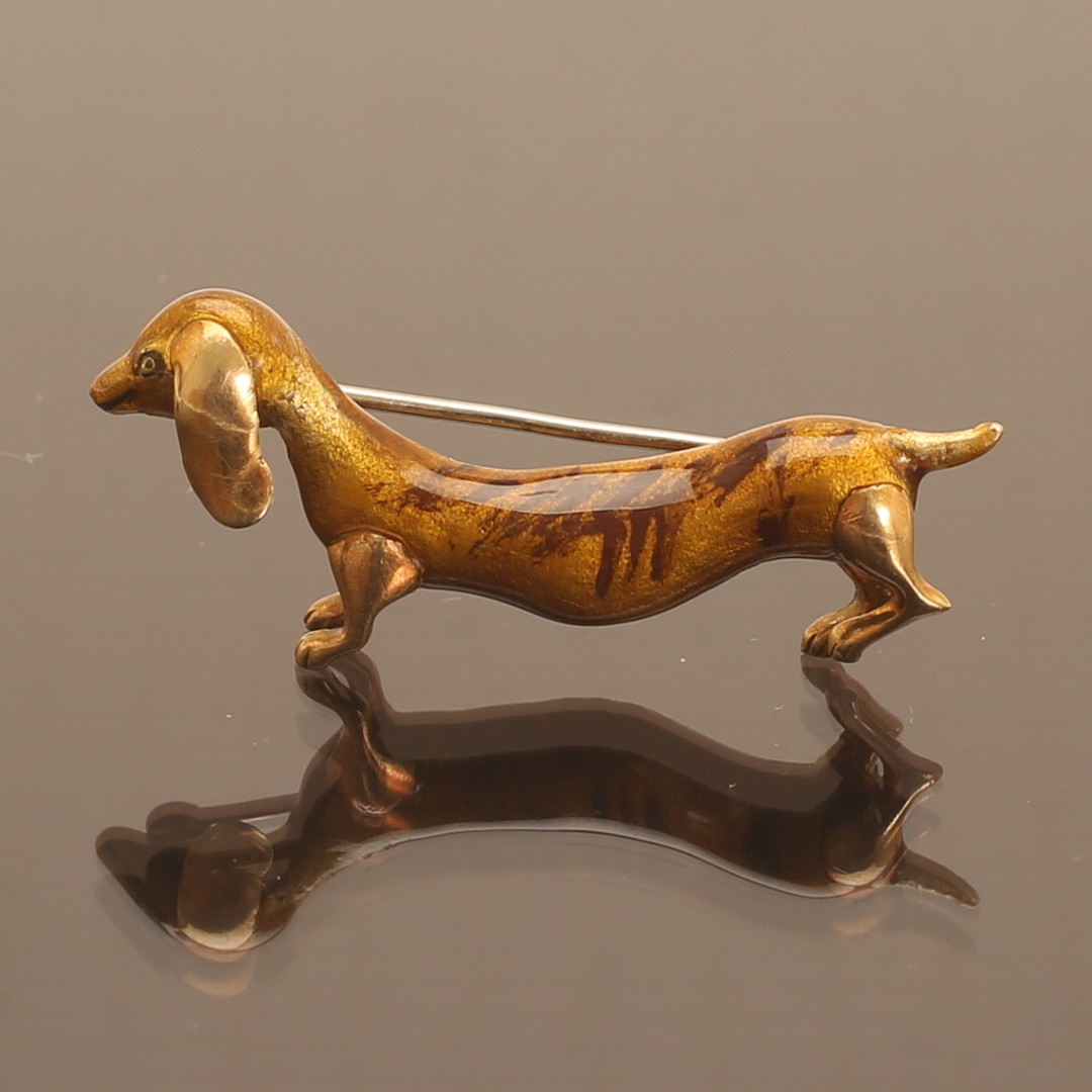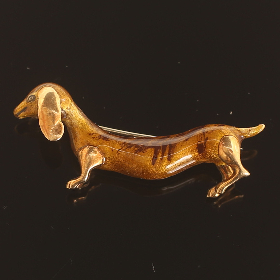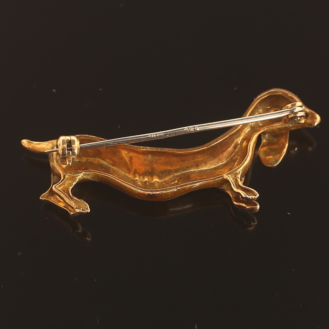 3072037. BROSCHE, 18 Karat Gold, Hund.