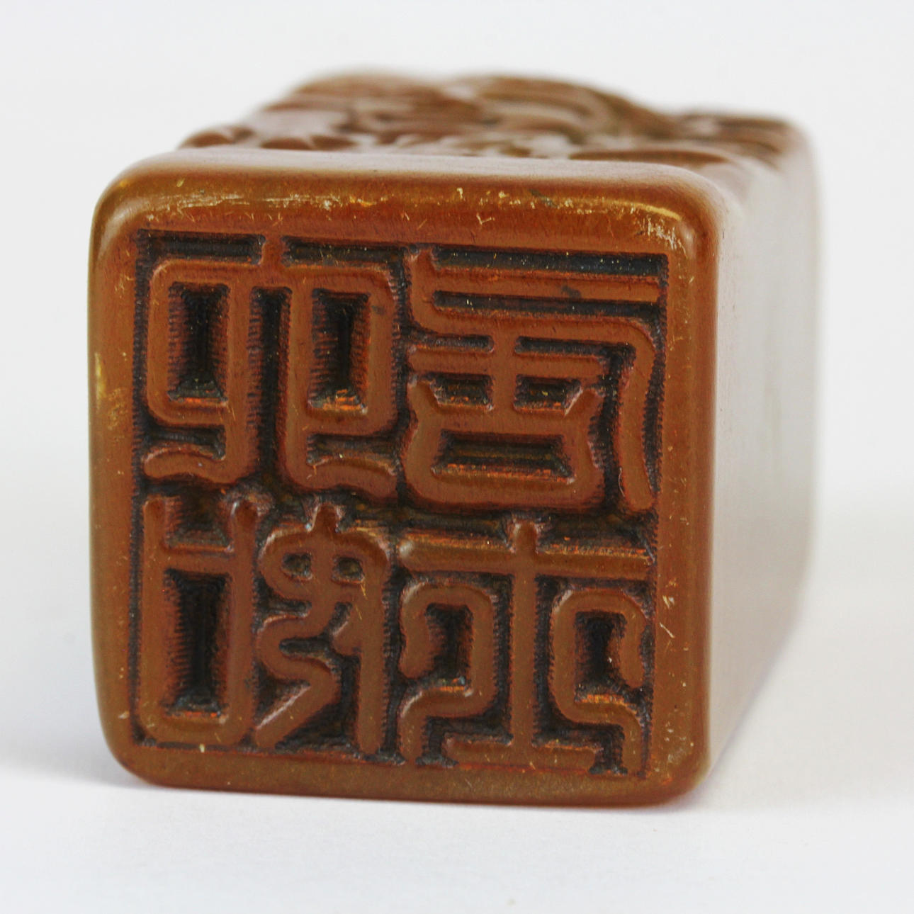Eine chinesische geschnitzte Speckstein-Schnupftabakflasche/Siegel, H. 7 cm.