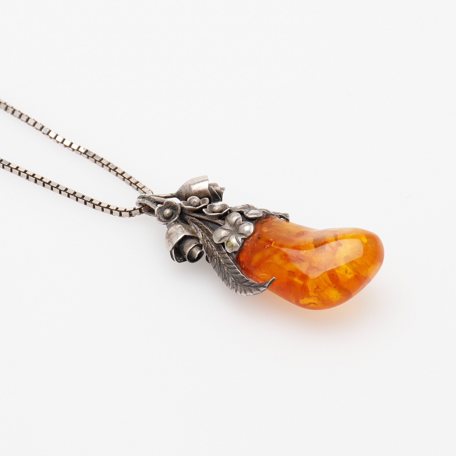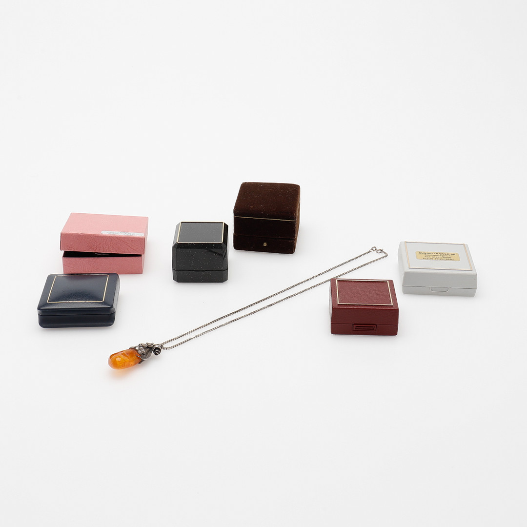 3076543. SCHMUCK, BERNSTEIN MIT SILBERMONTAGE, SIEBEN JUWELEN.