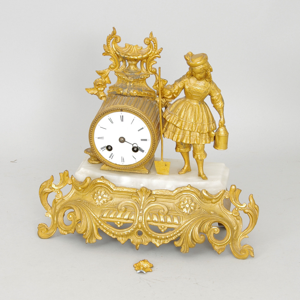 307736. TISCHUHR, Marmor/vergoldet, Paris.