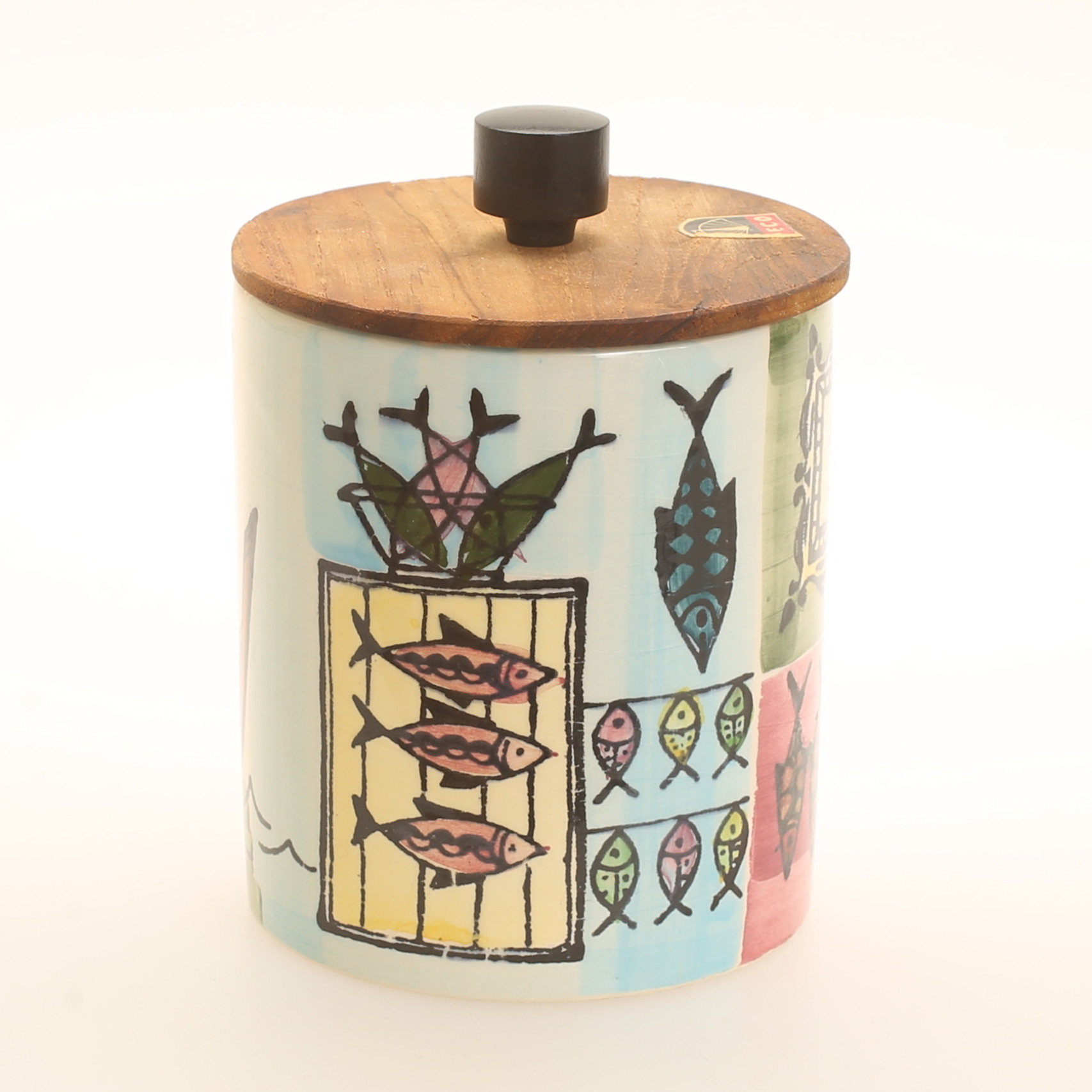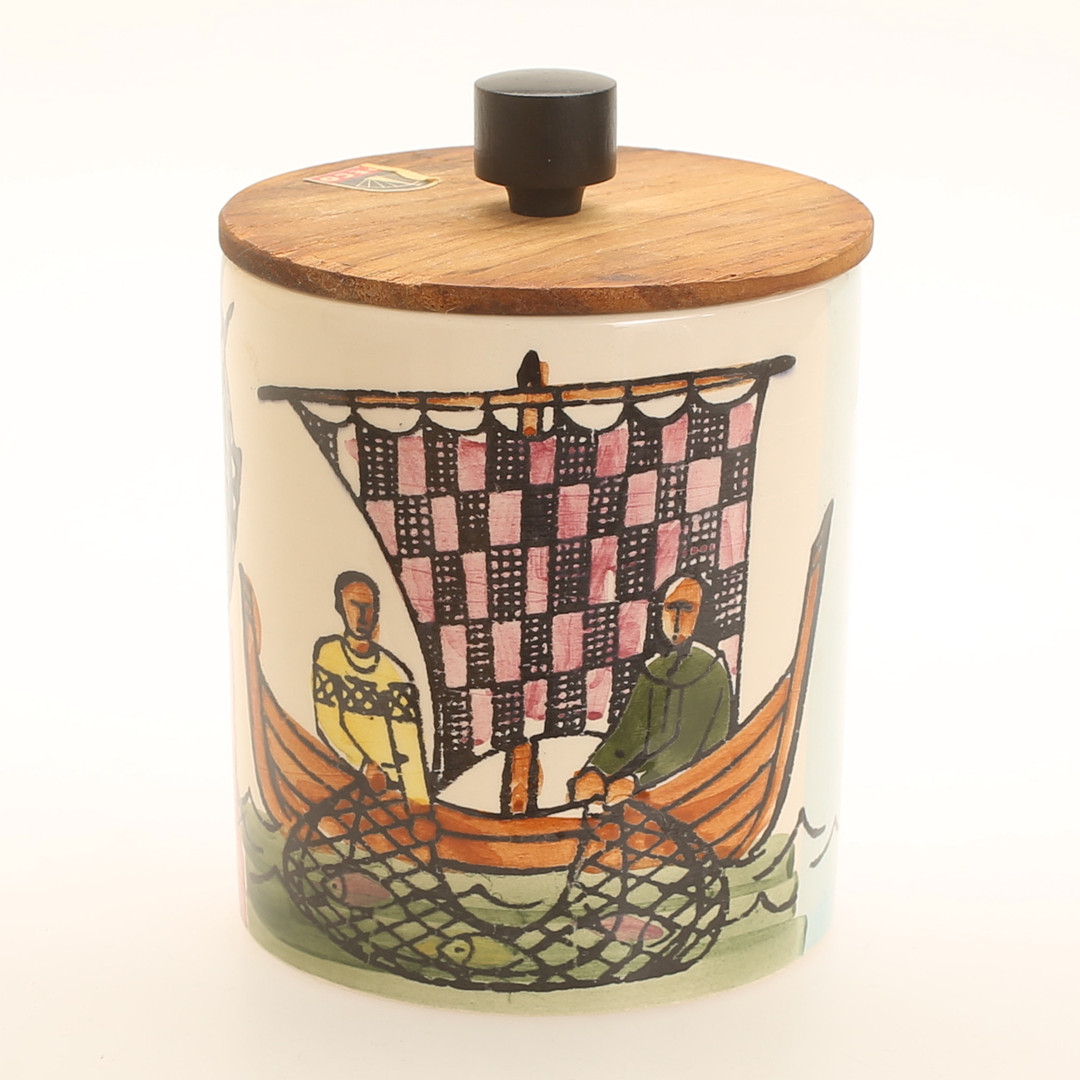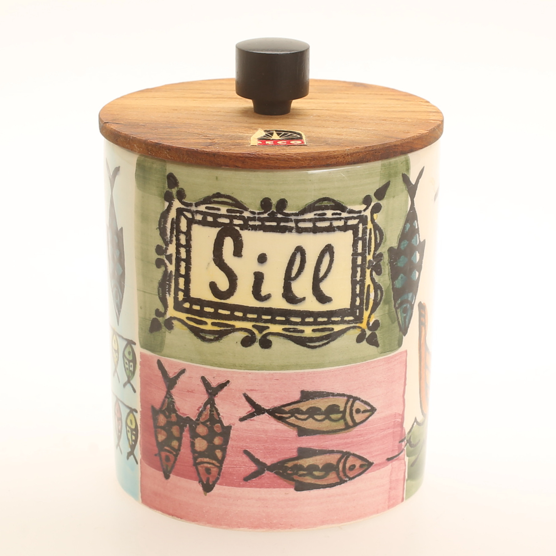 3078989. GLAS, mit Deckel, „Hering“, Deko, Hälsingborg.