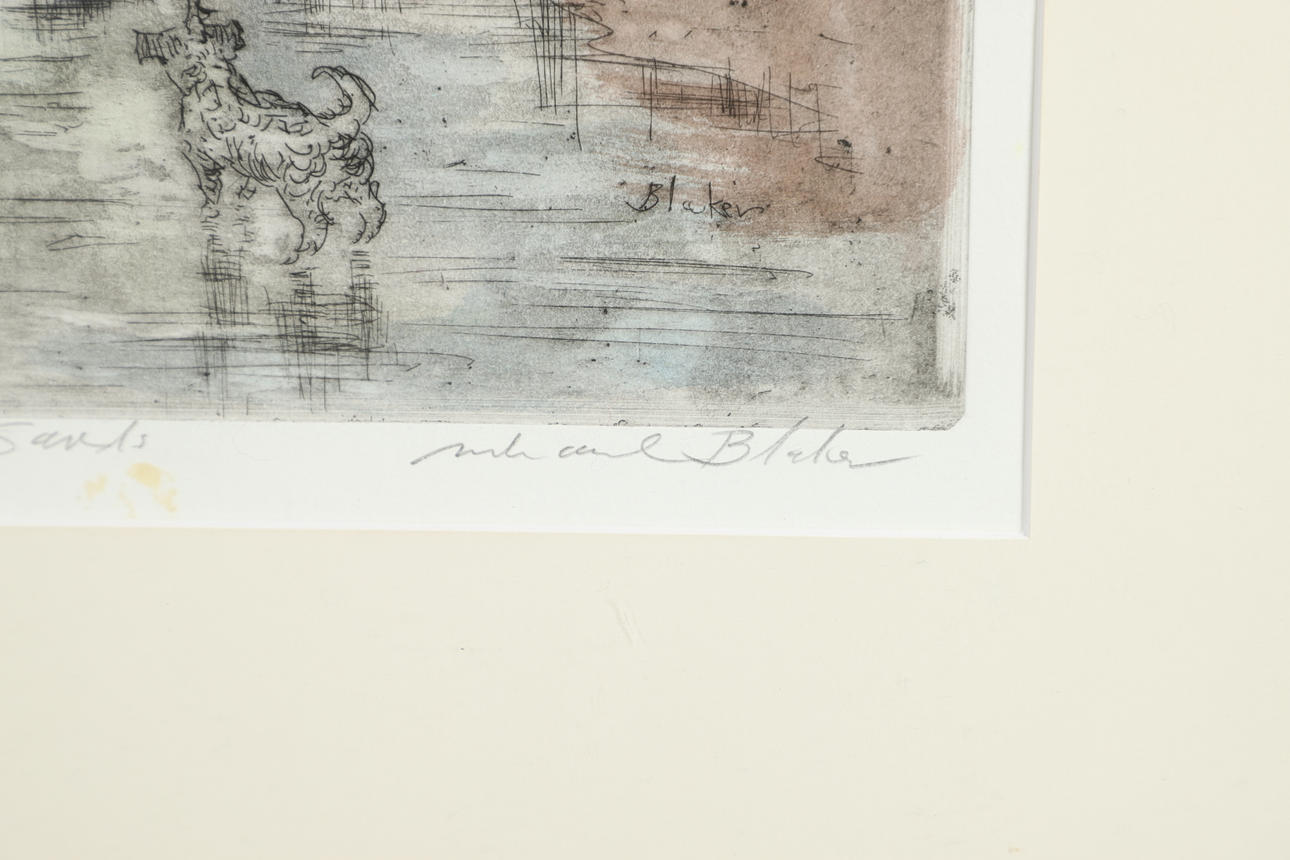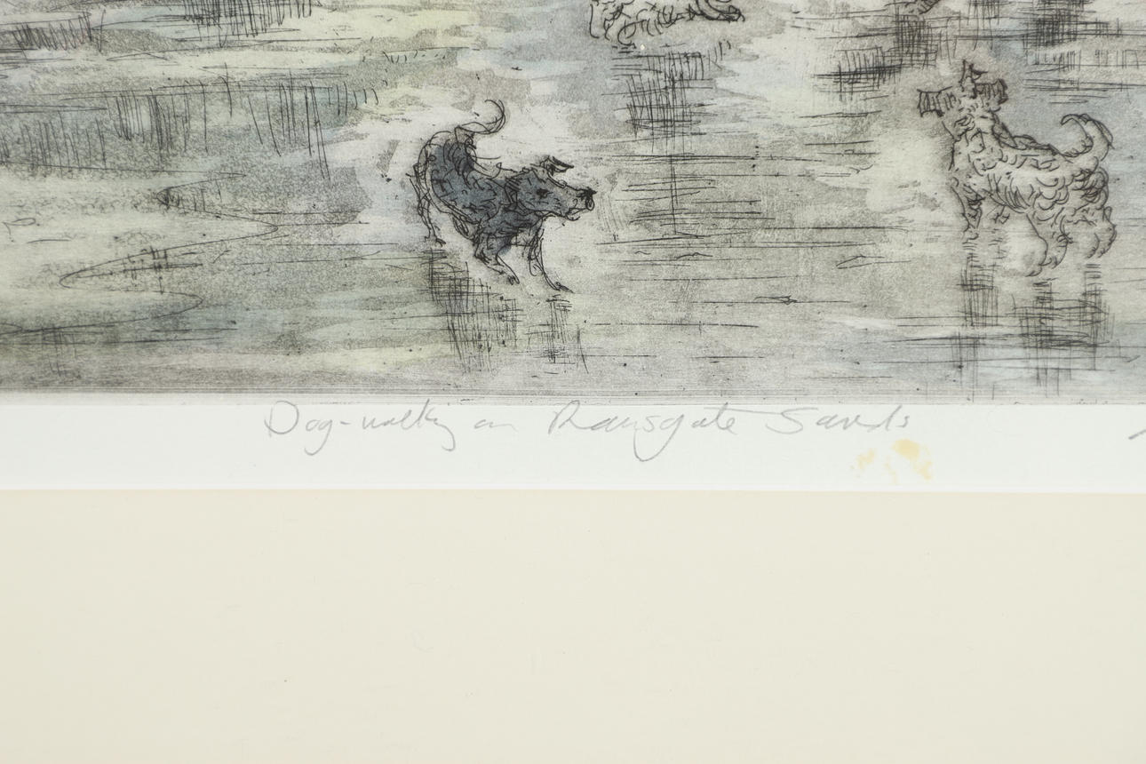 MICHAEL BLAKER (B.1928). HUND GEHT AUF RAMSGATE SANDS Gassi.