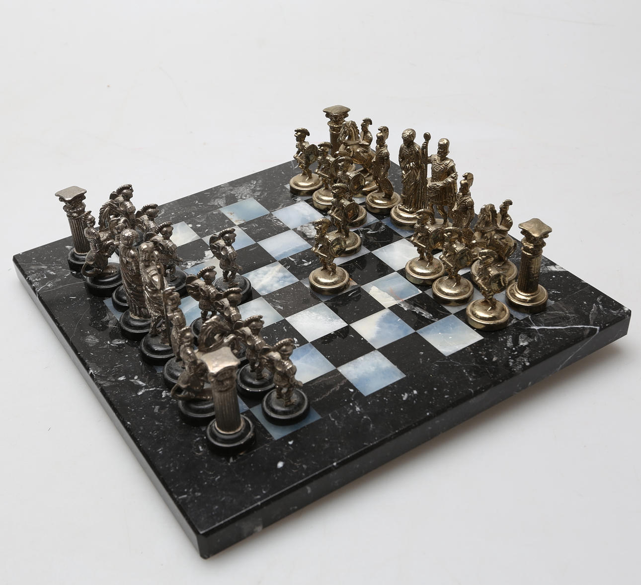 3087837. SCHACH, mit Figuren, das Brett aus Stein.