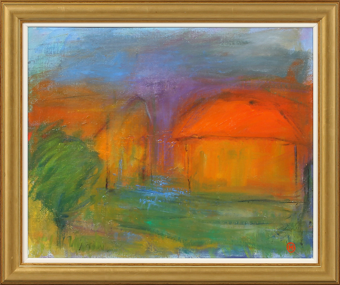 309019. OIDENTIFIERAD KONSTNÄR. Haus, Öl auf Platte, monogrammiert.
