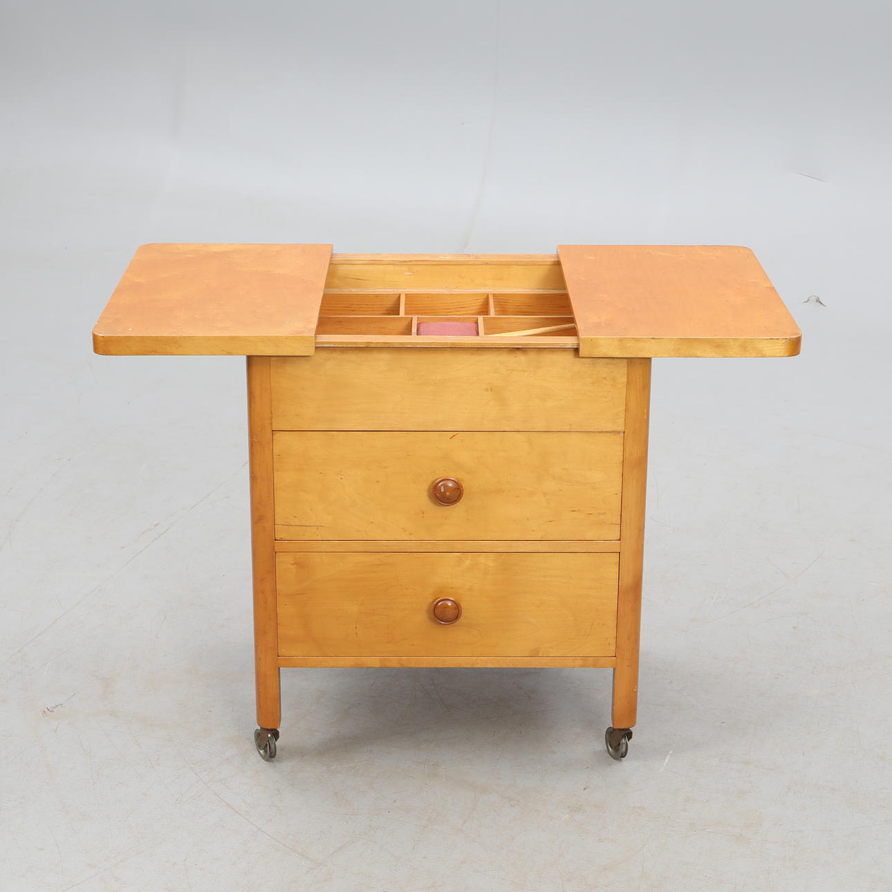 3091850. NÄHTISCH auf Rollen, ausziehbare Scheibe.
