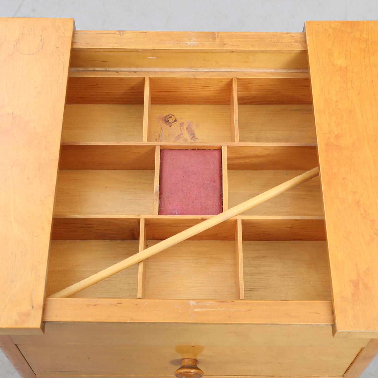 NÄHTISCH auf Rollen, ausziehbare Scheibe.
