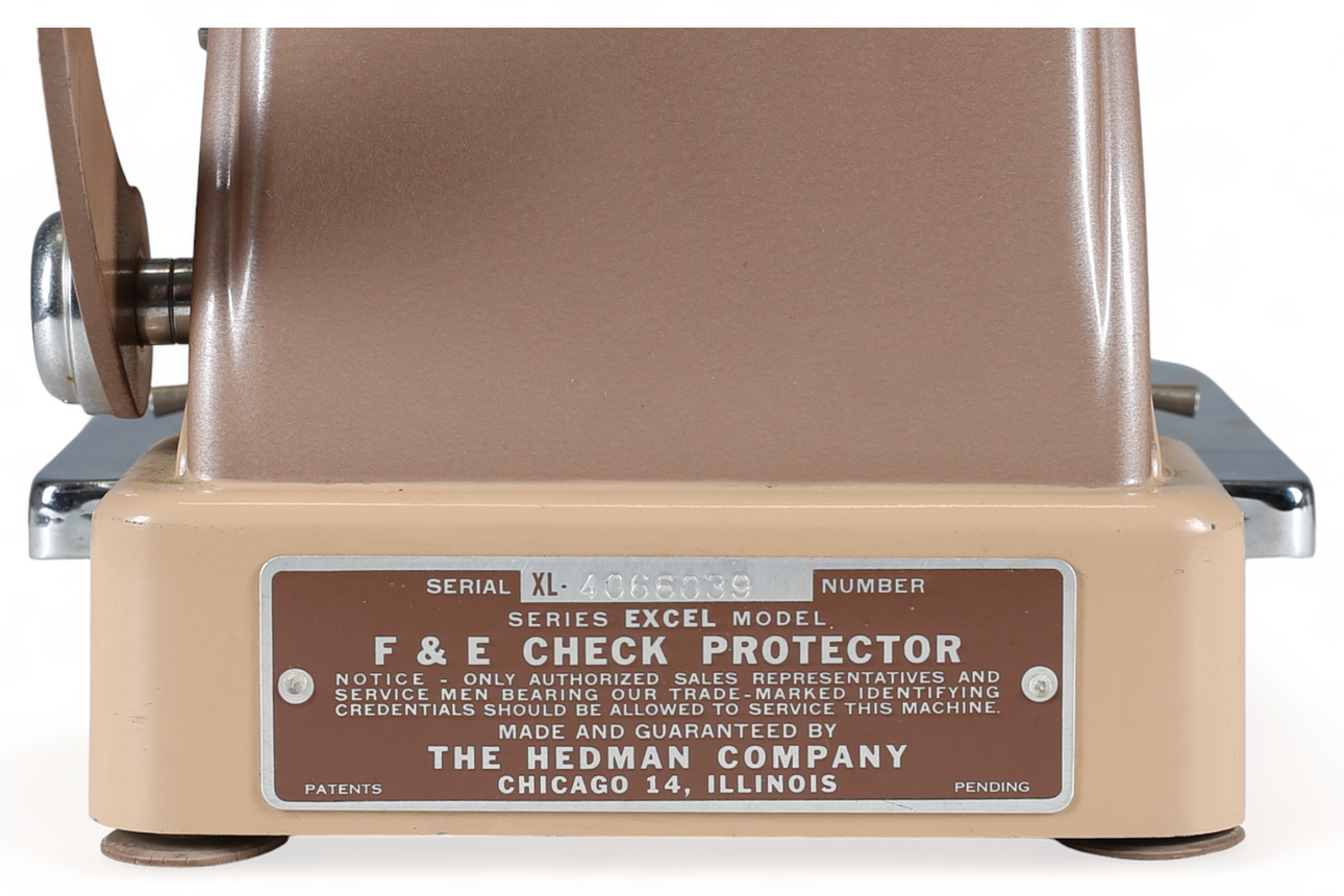 Scheckdrucker, „Excel“, F & E, Hedman & Co, Chicago, erste Hälfte des 20. Jahrhunderts.