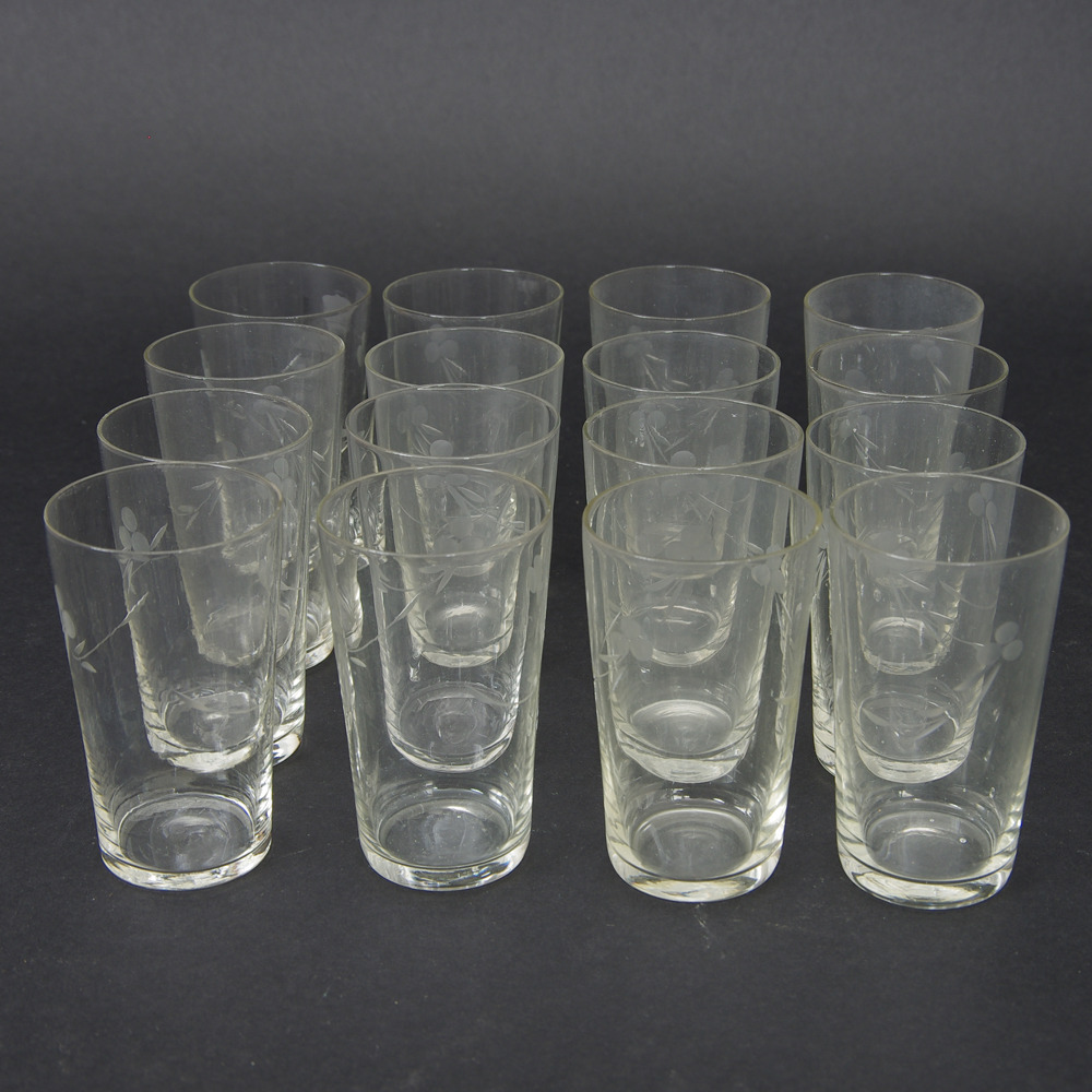 309819. SELTER GLAS, 16 Stück, Ätzdekor.