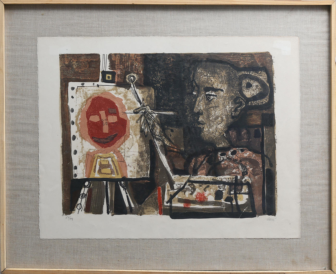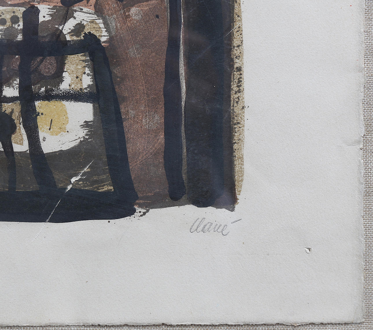 Signierte und nummerierte Lithographie 37/99. 1953 von l'Oeuvre Gravée aus Zürich herausgegeben und im Pariser Studio von Edmond und Jacques Desjobert aufgenommen. Referenzbibliographie: Antoni Clavé. Oeuvre aufgezeichnet. Catalogue raisonné“, Paris, Skira, 2004, S. 113. Nr. 53.