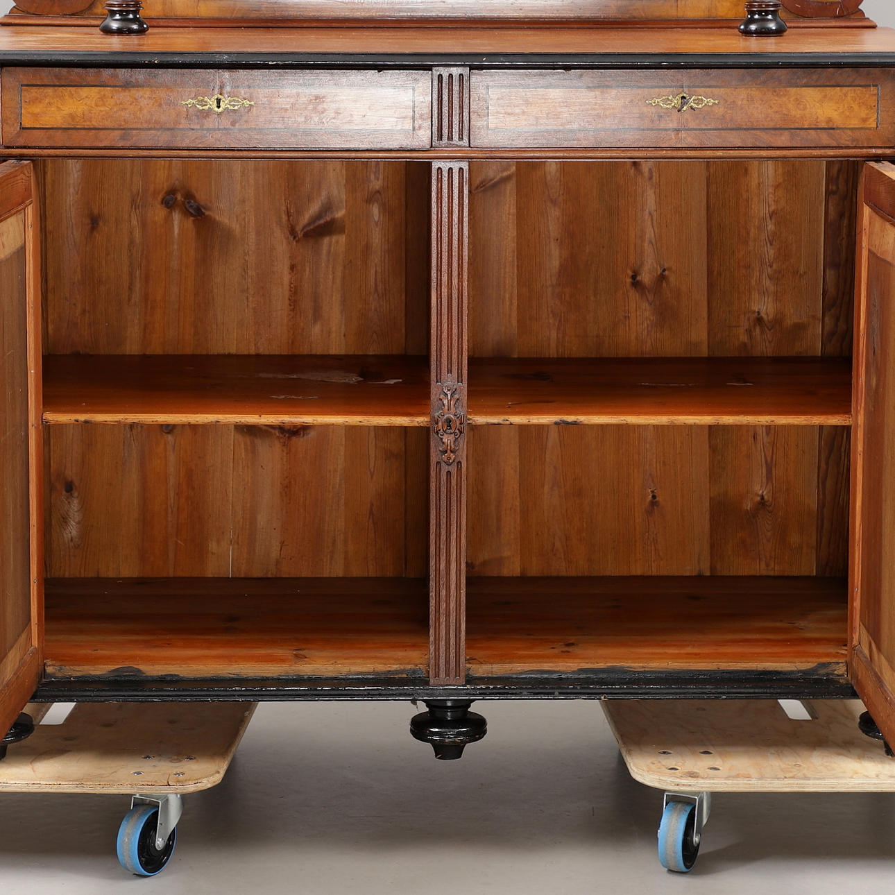 Verschleiß, Flecken, Kratzer. Der Schlüssel funktioniert für die Schubladen, nicht für die Schränke.