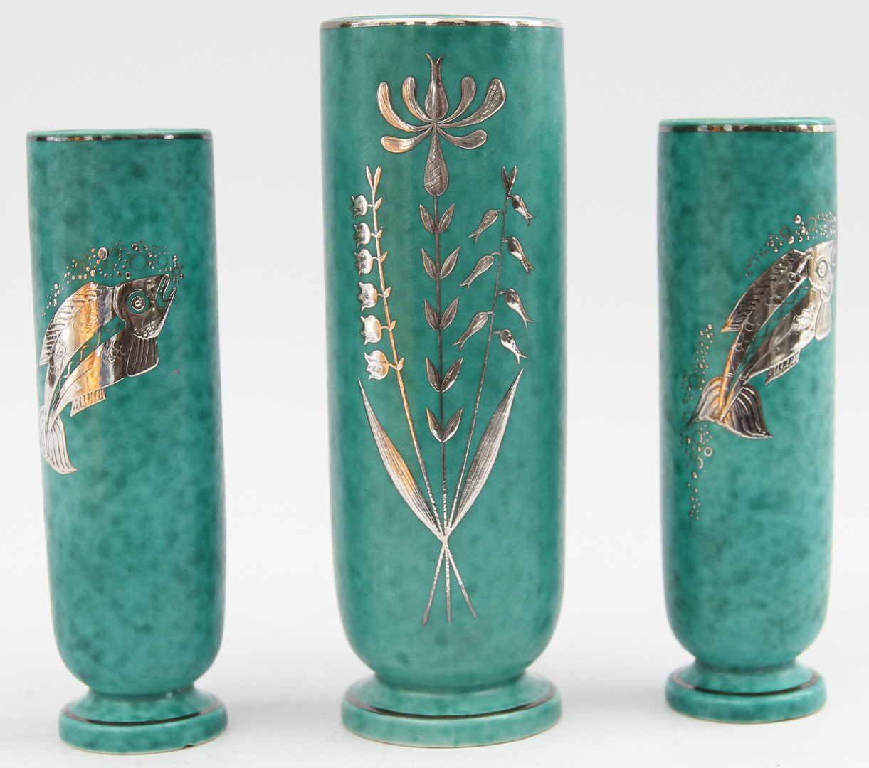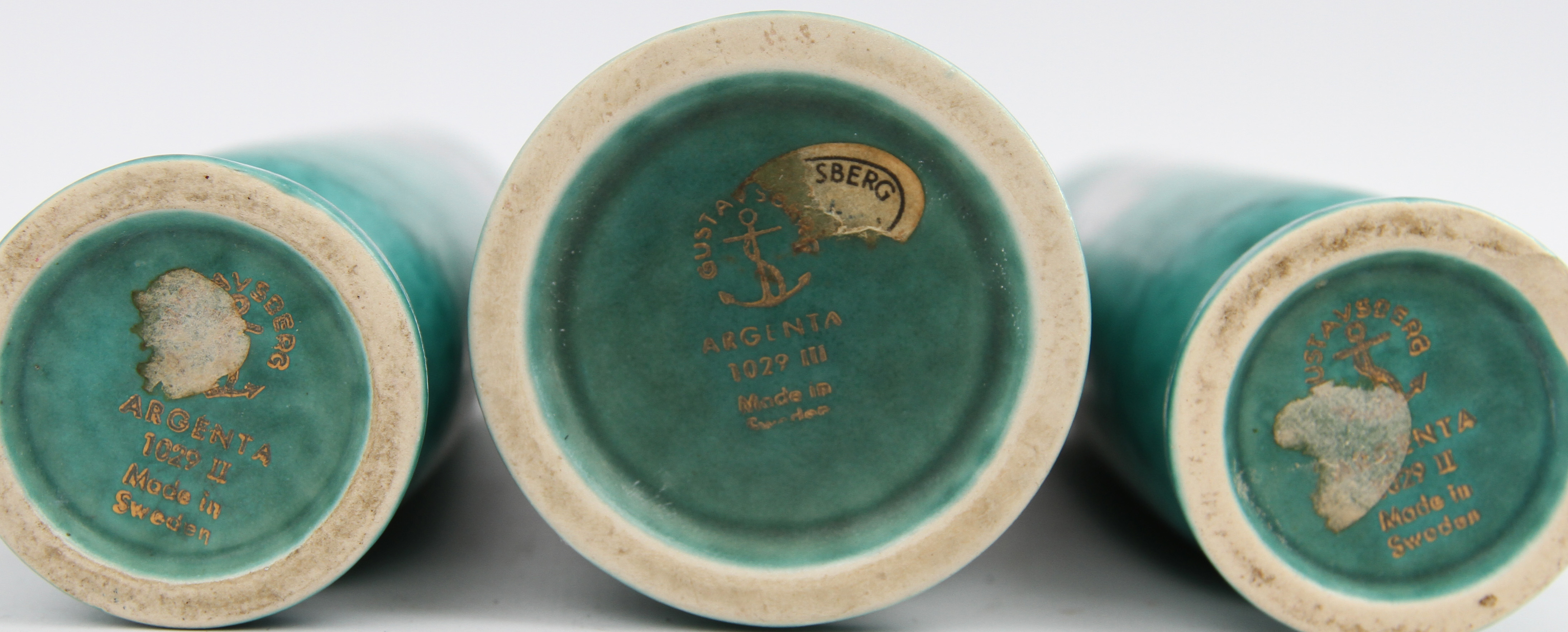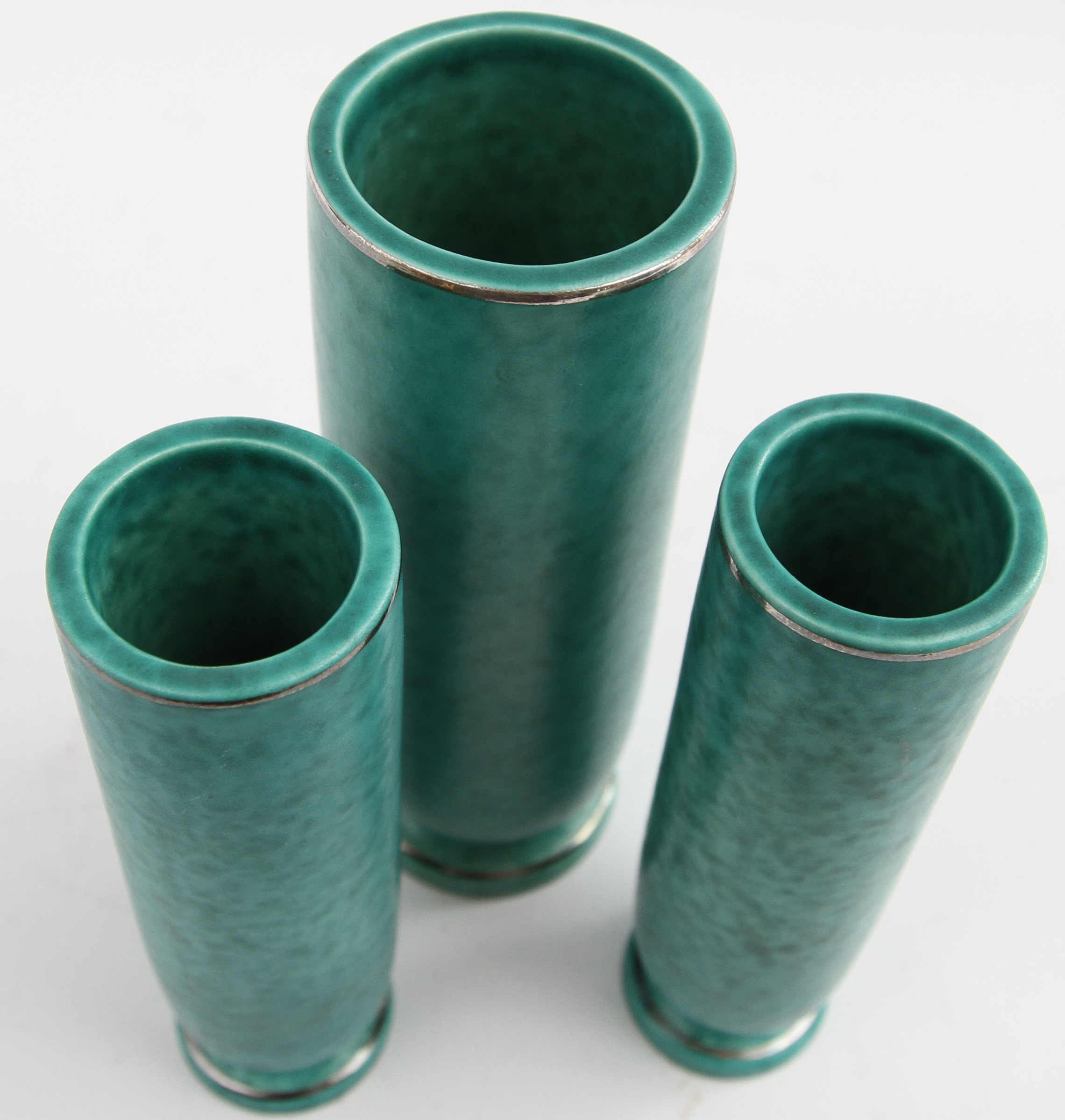 31040. WILHELM KÅGE. Vasen 3 Stück, "Argenta", grüne Glasur.