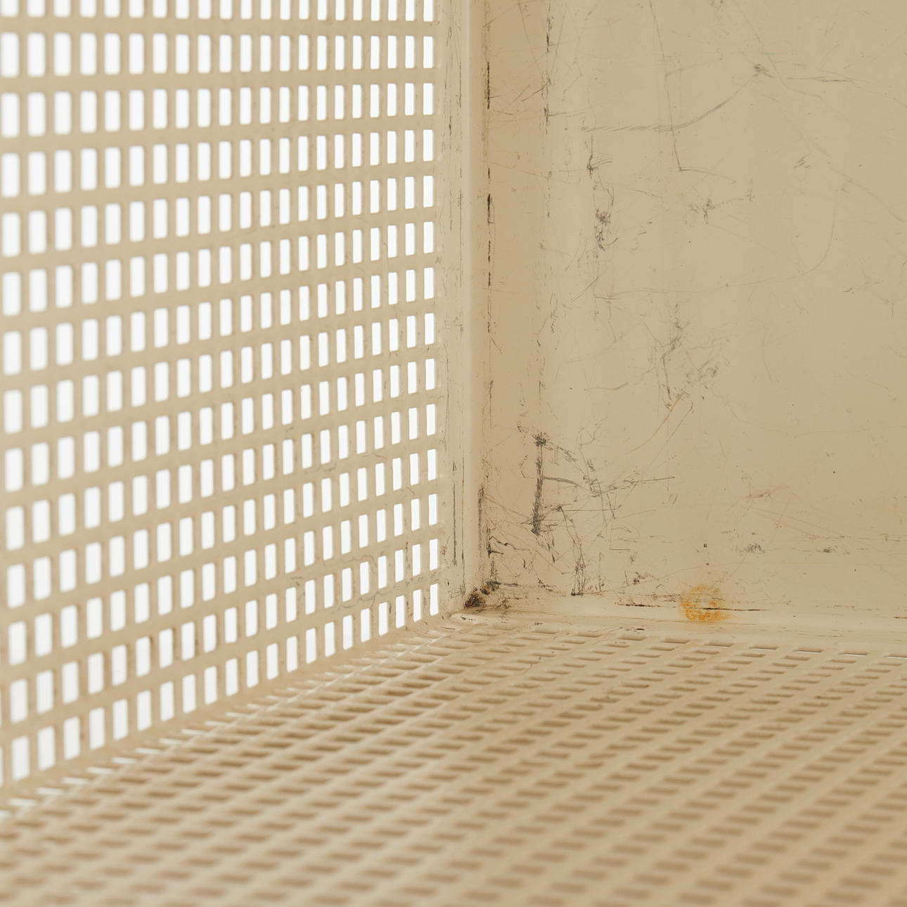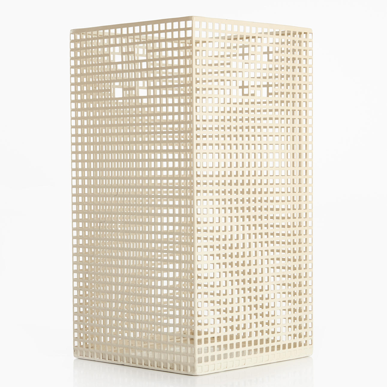 JOSEF HOFFMANN. Schirmständer oder Papierkorb, Bieffeplast, Italien, 1970er Jahre, entworfen 1905, weiß lackiertes Metall.