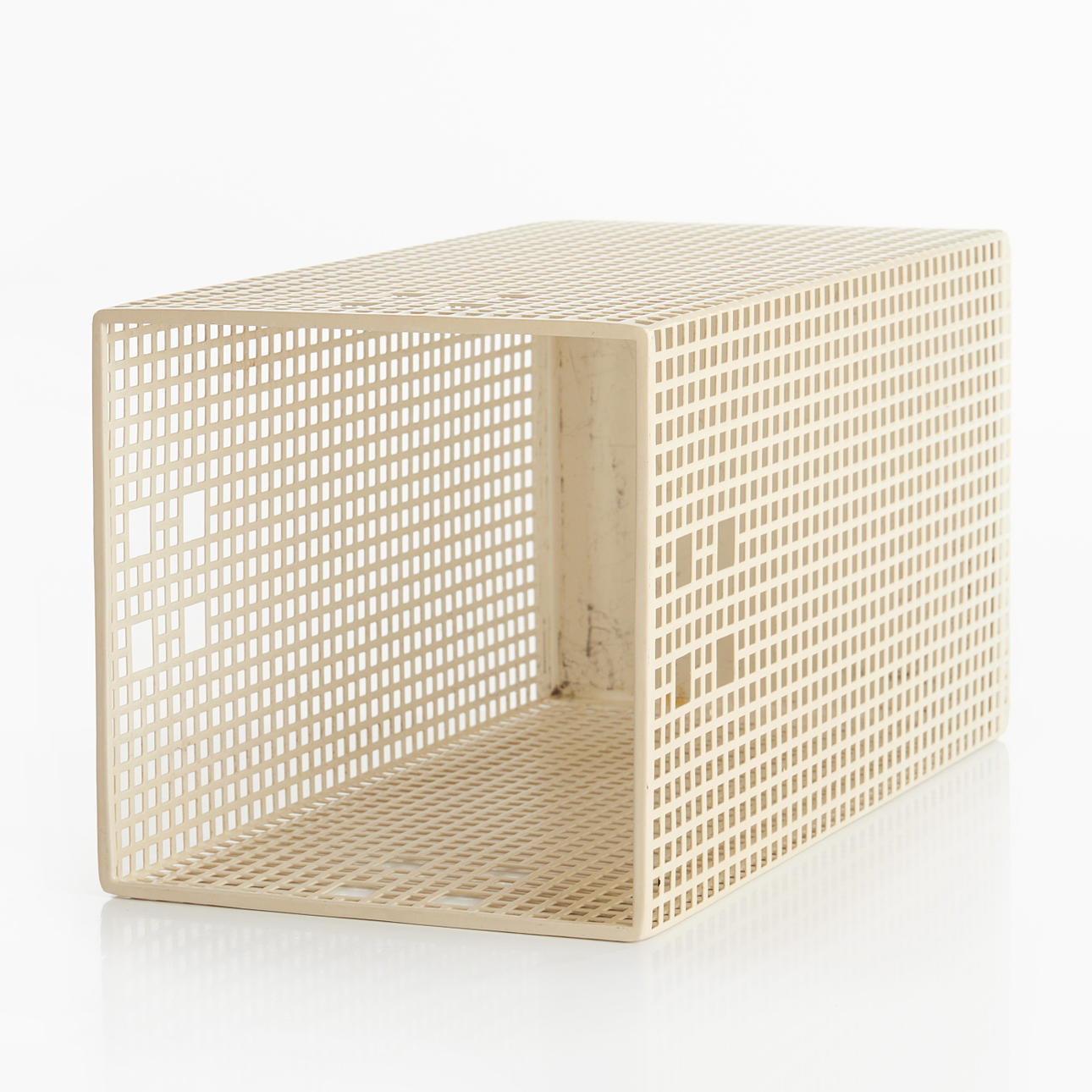 3105385. JOSEF HOFFMANN. Schirmständer oder Papierkorb, Bieffeplast, Italien, 1970er Jahre, entworfen 1905, weiß lackiertes Metall.