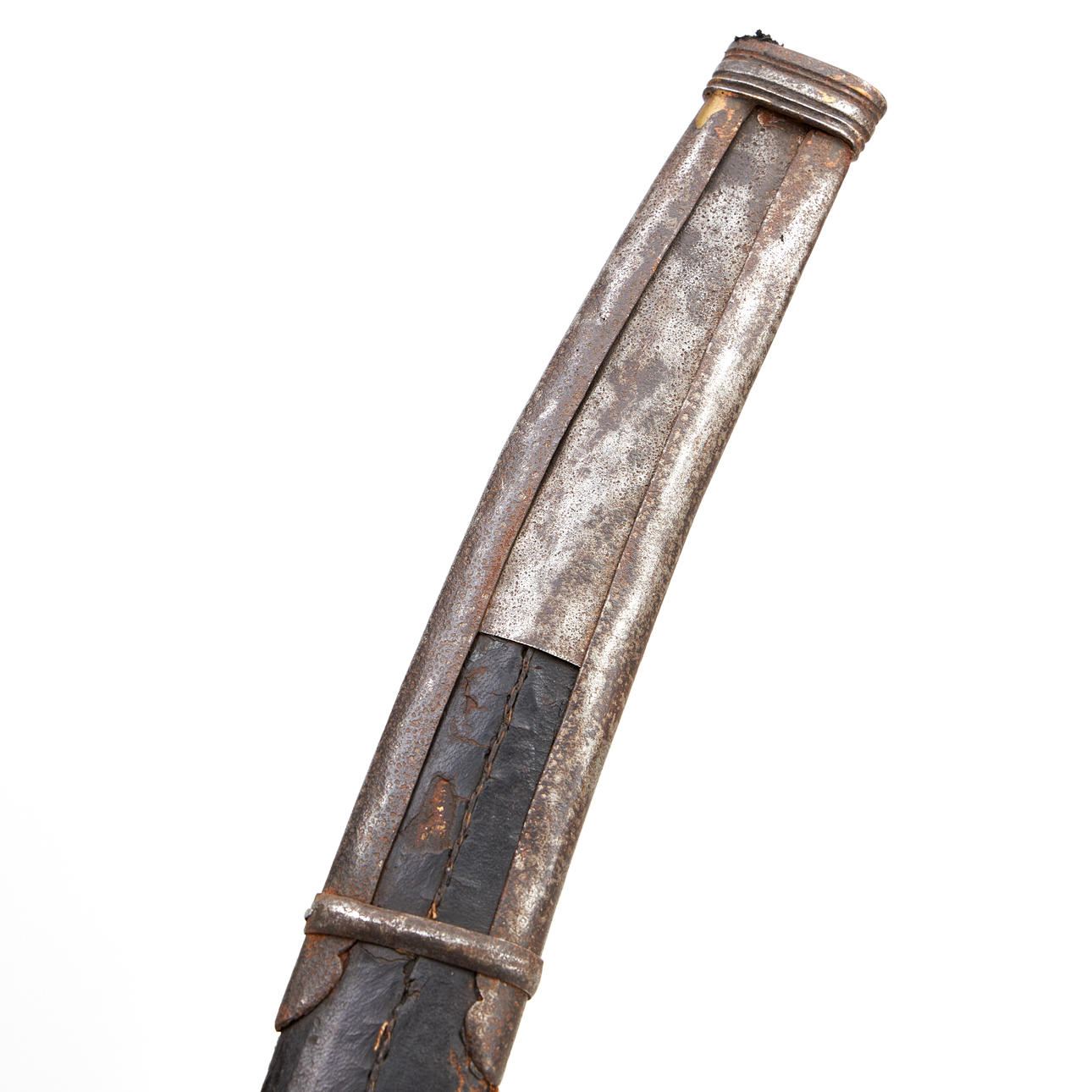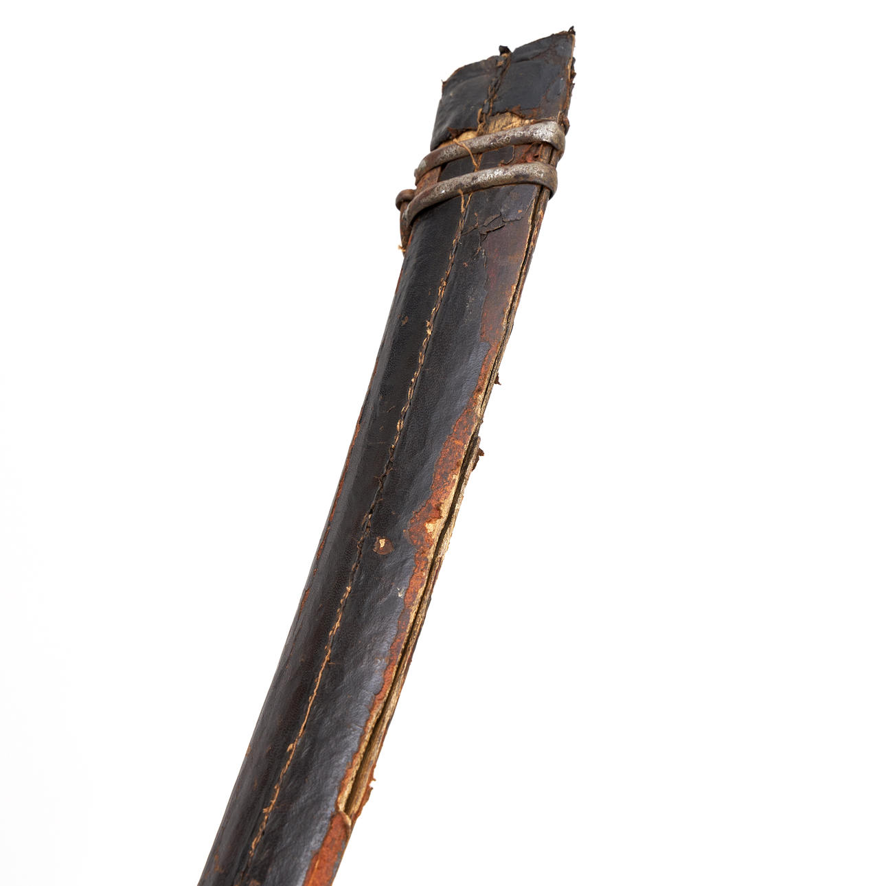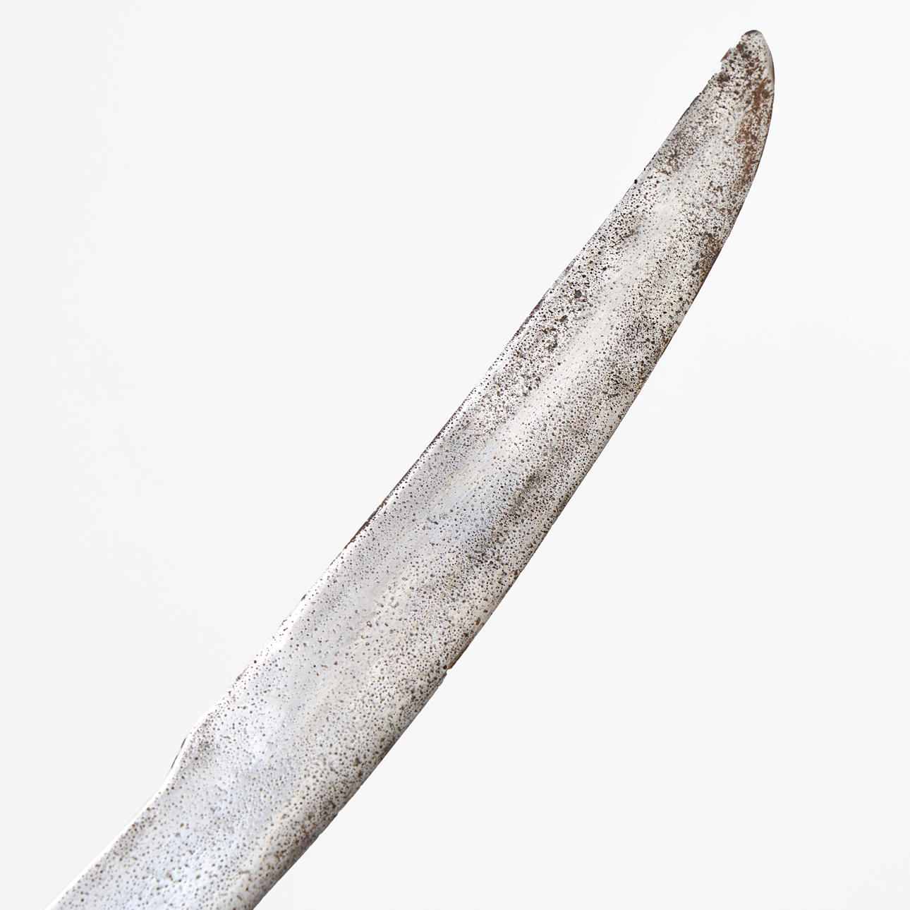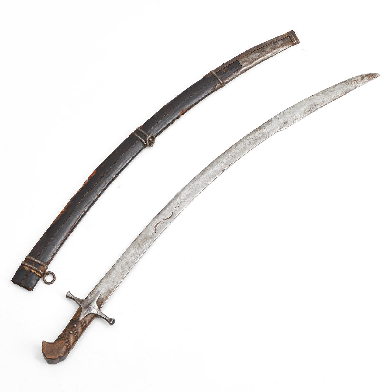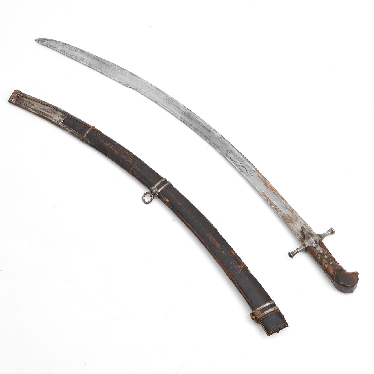 Schaft aus geschnittenem Holz. Klingenlänge 76, insgesamt 89 cm.