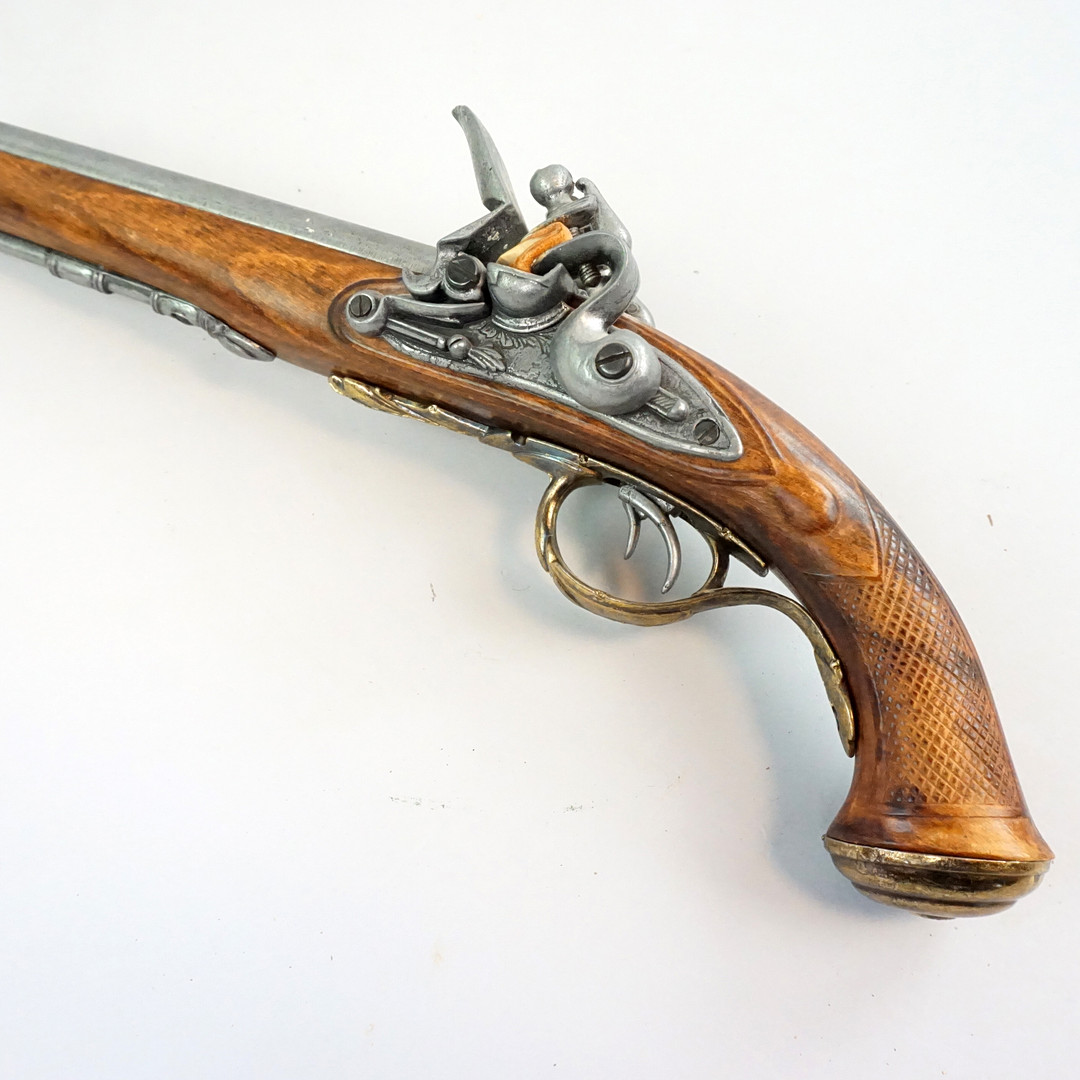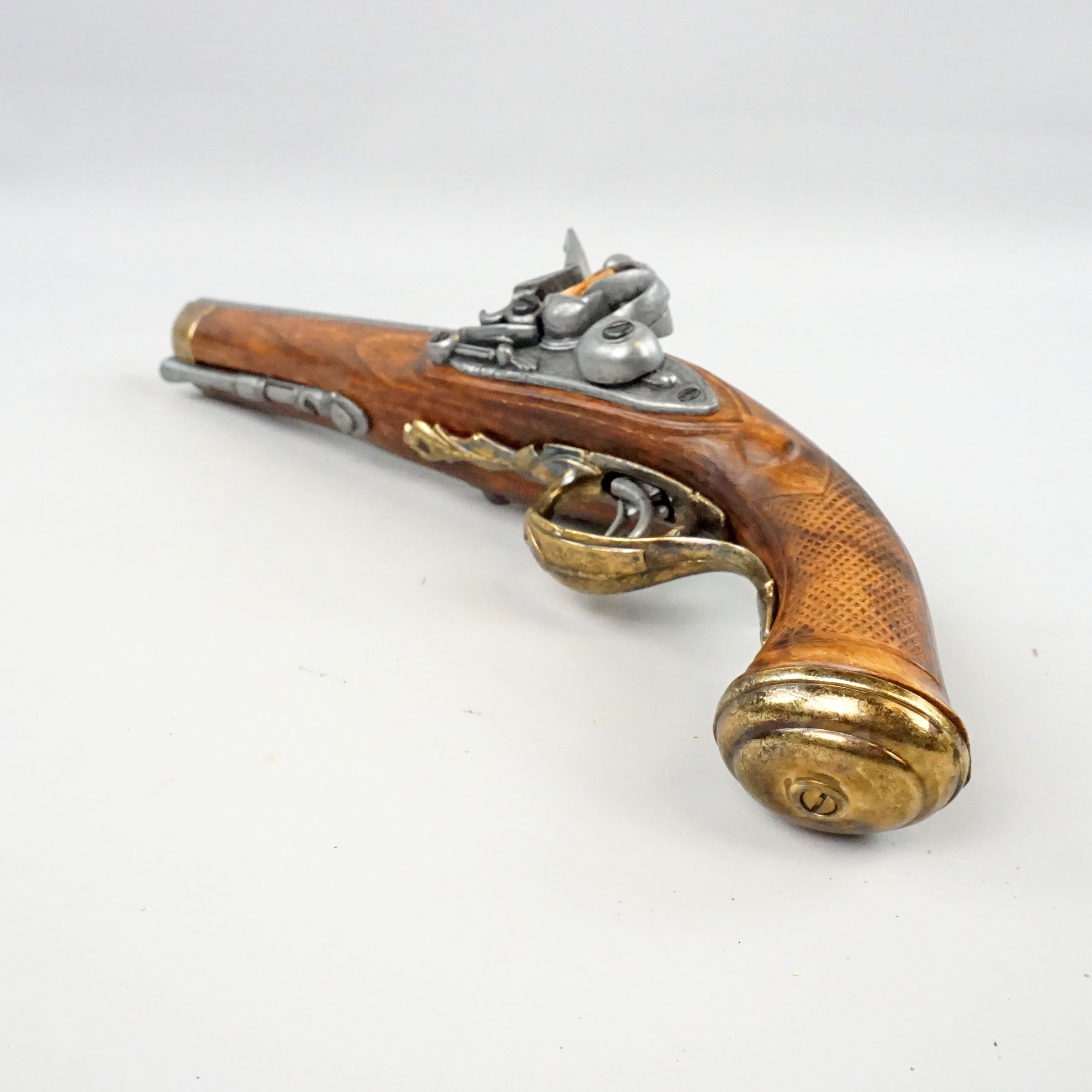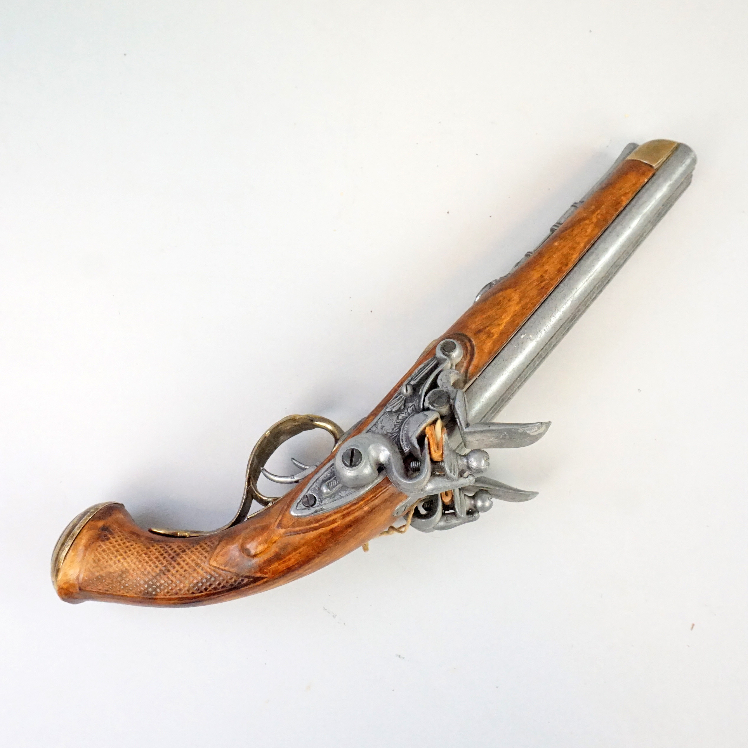 3110222. STEINSCHLOSSPISTOLE, Replik, doppelläufig.