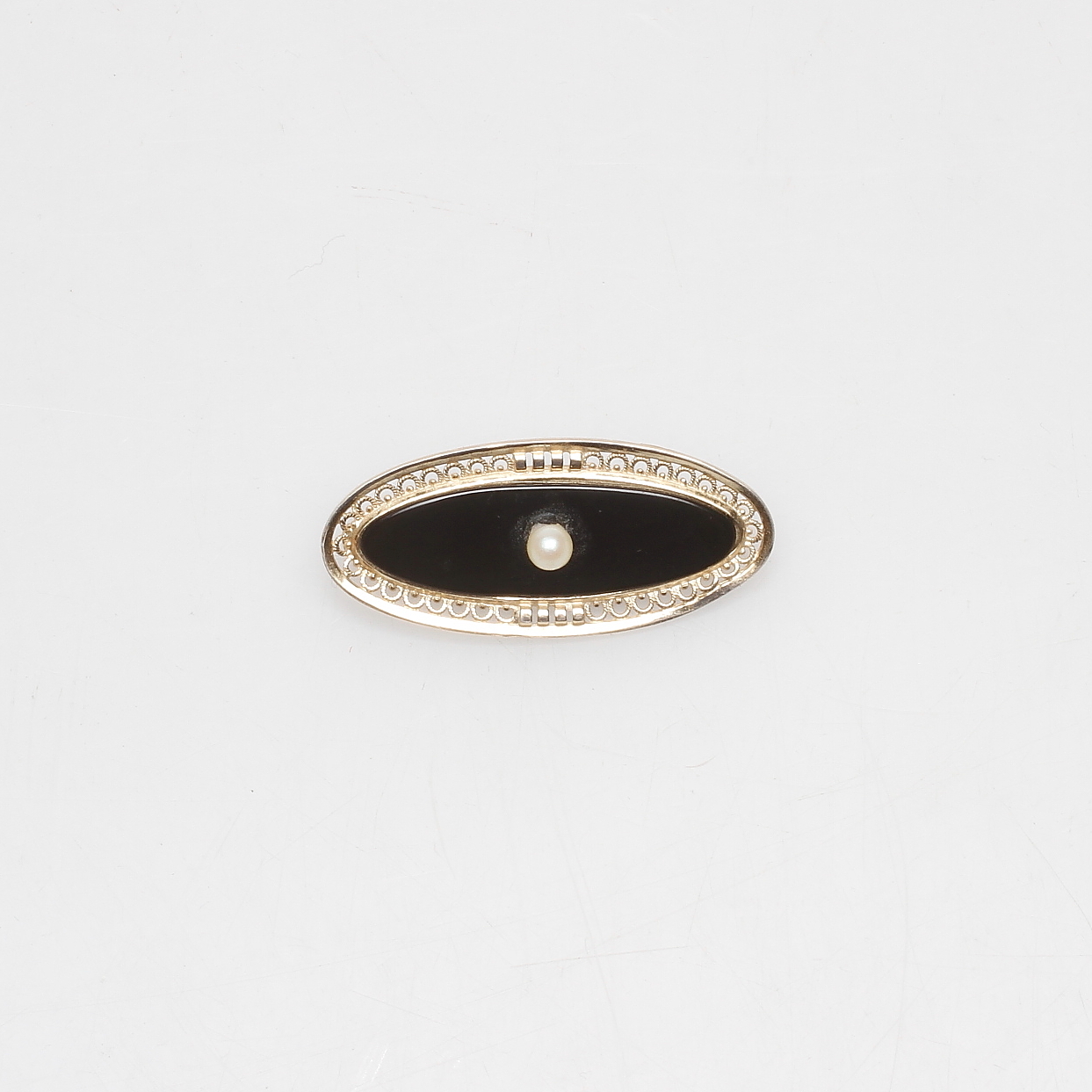 311537. BROSCHE, Silber, vergoldet mit Perle.