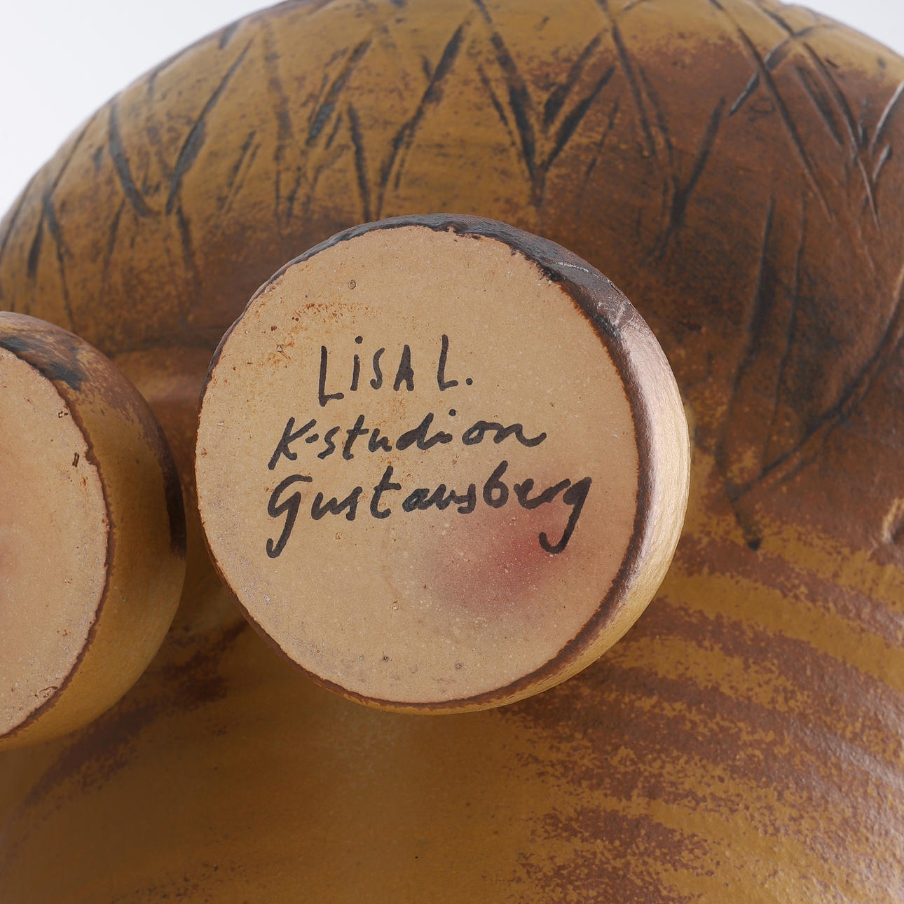 Teilweise glasiertes Steinzeug, signiert Lisa.L, Höhe ca. 37 cm.