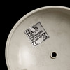 Metallrahmen mit Kunstfasermaterial bezogen, beschriftet, Höhe 75, Durchmesser 110 cm.