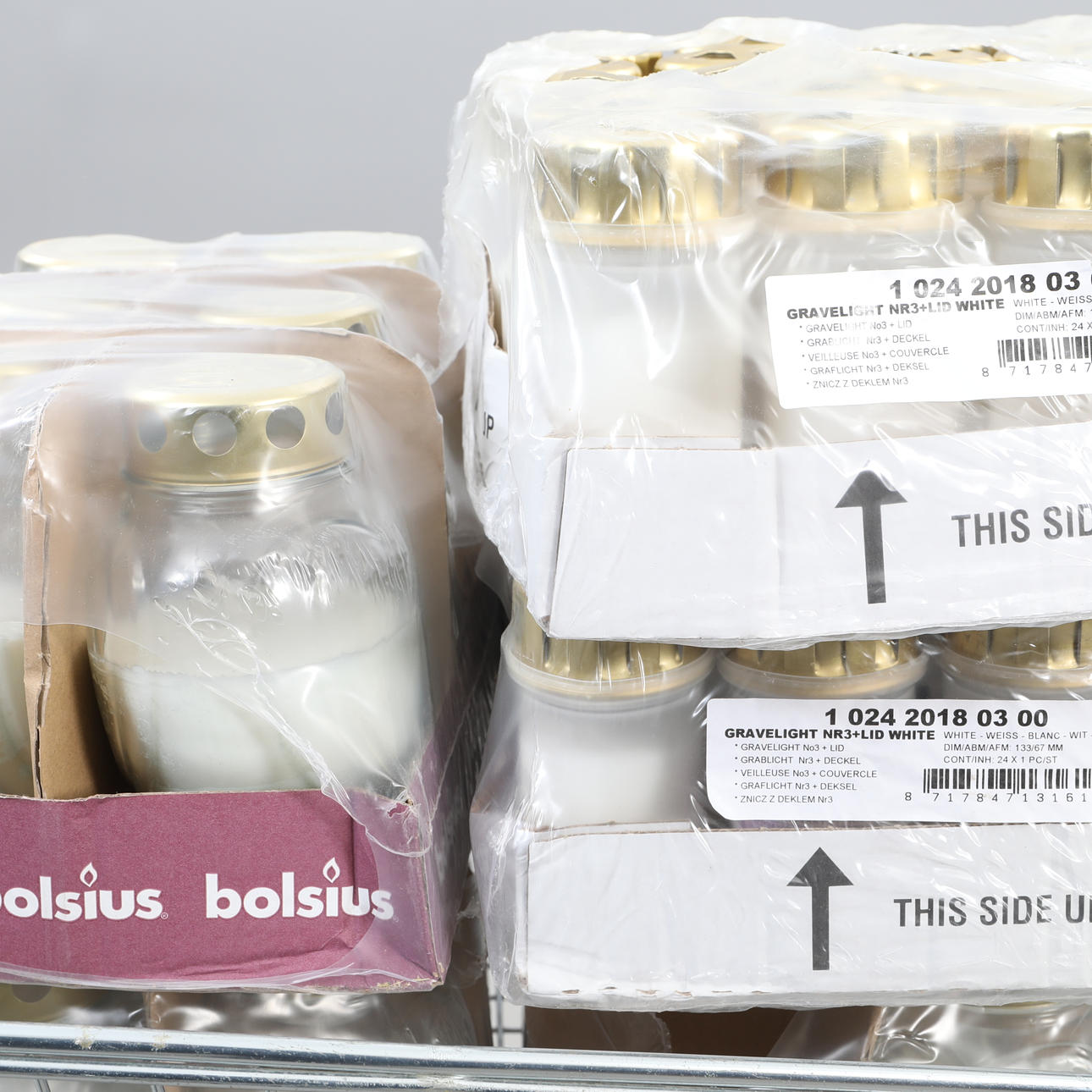 3126773. GRABKERZEN, 8 Kartons 76 Kerzen (Glas).
