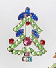 Broschen mit farbigem Strass besetzt, als Christbaum ausgeführt, Rückseite mit Nadel, Größe der großen Brosche ca. 7 x 57 cm.