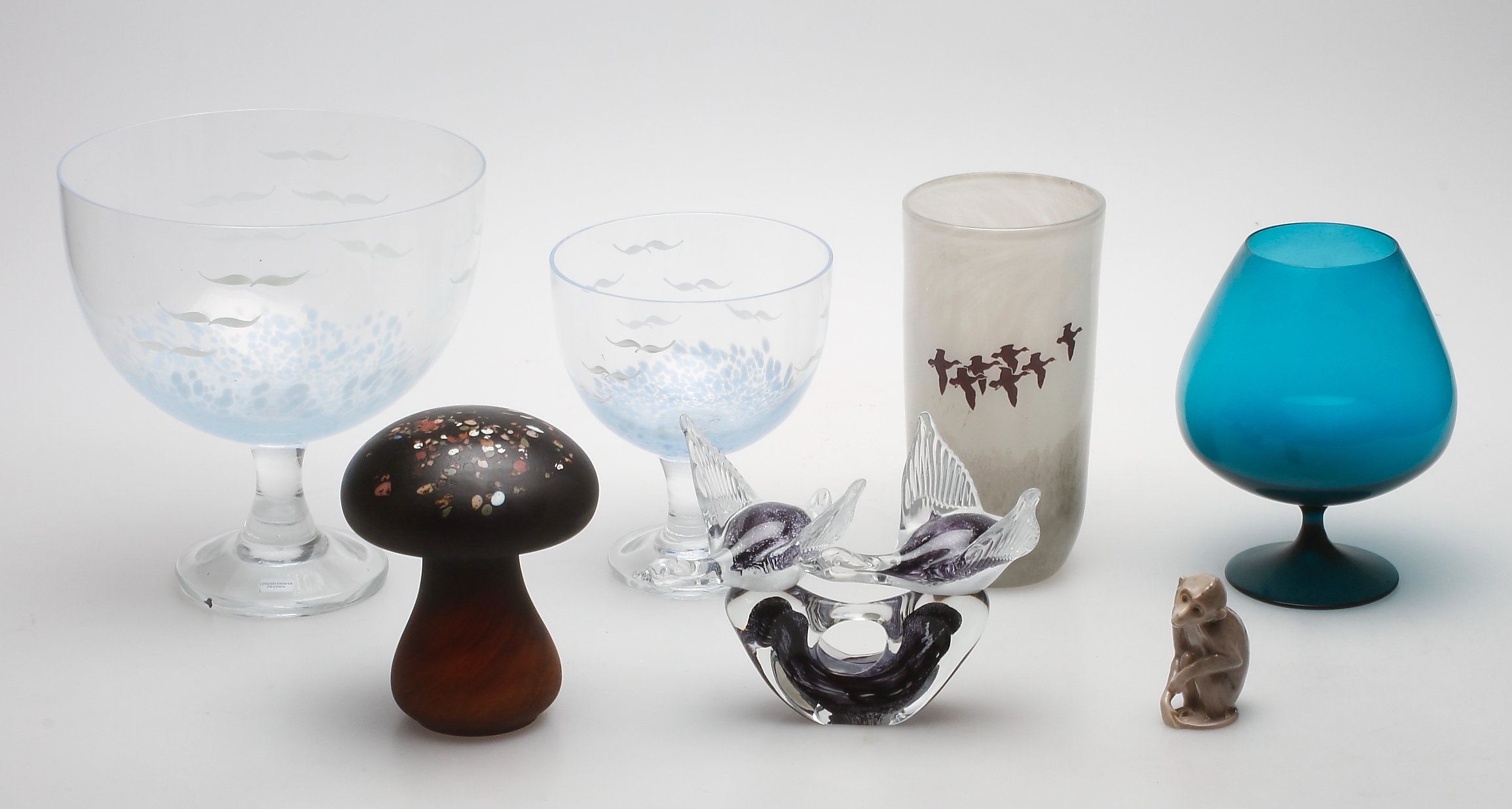 313006. GLAS UND KERAMIK, 7 Teile, Schweden und Dänemark.