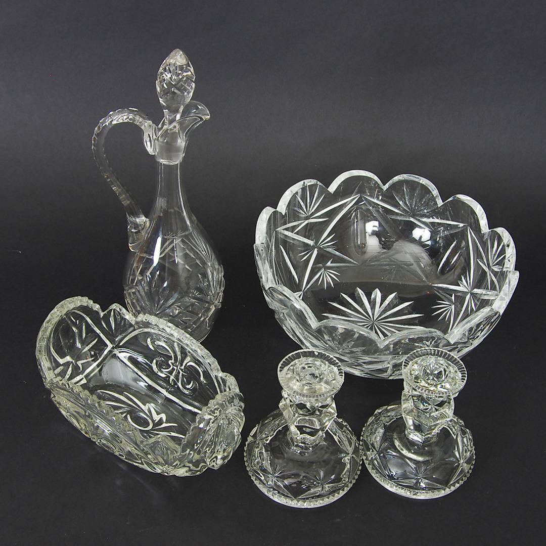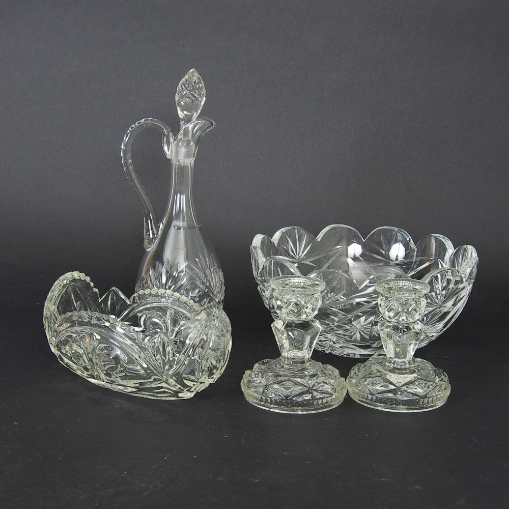 313324. SCHALEN, KARAFFEN UND KERZEN, Kristall/Pressglas.