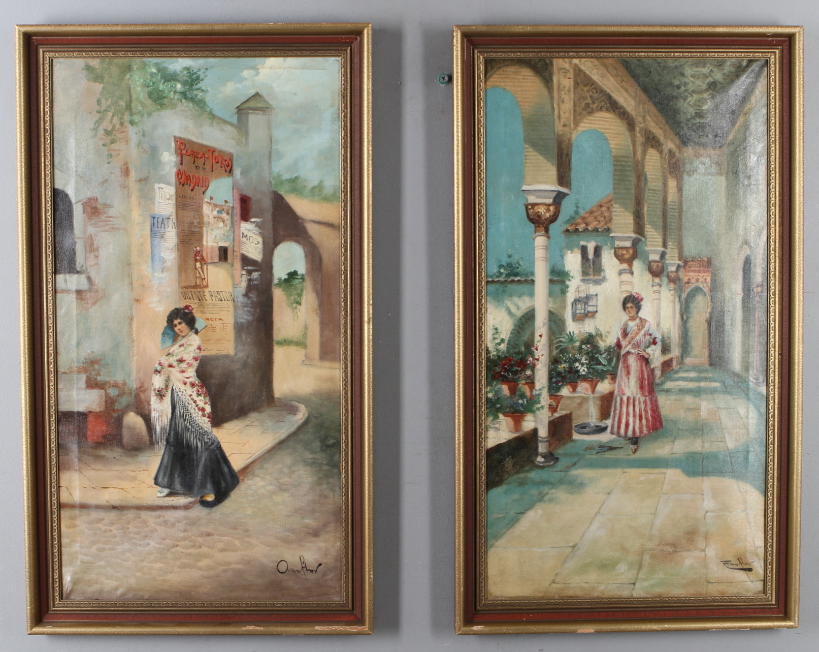 313353. OIDENTIFIERADE KONSTNÄRER. 2 Stück, Öl auf Leinwand, signiert.