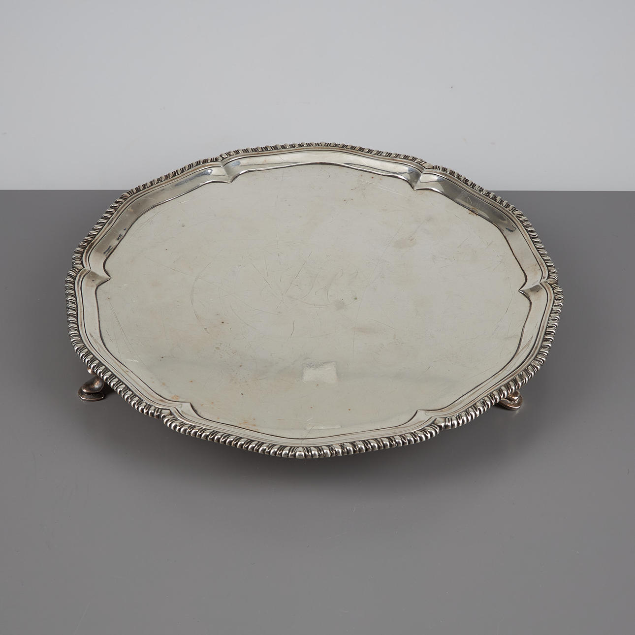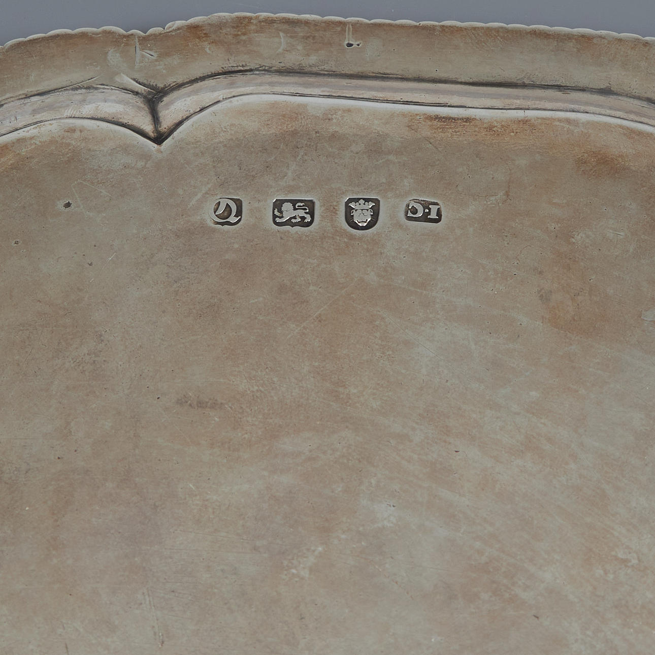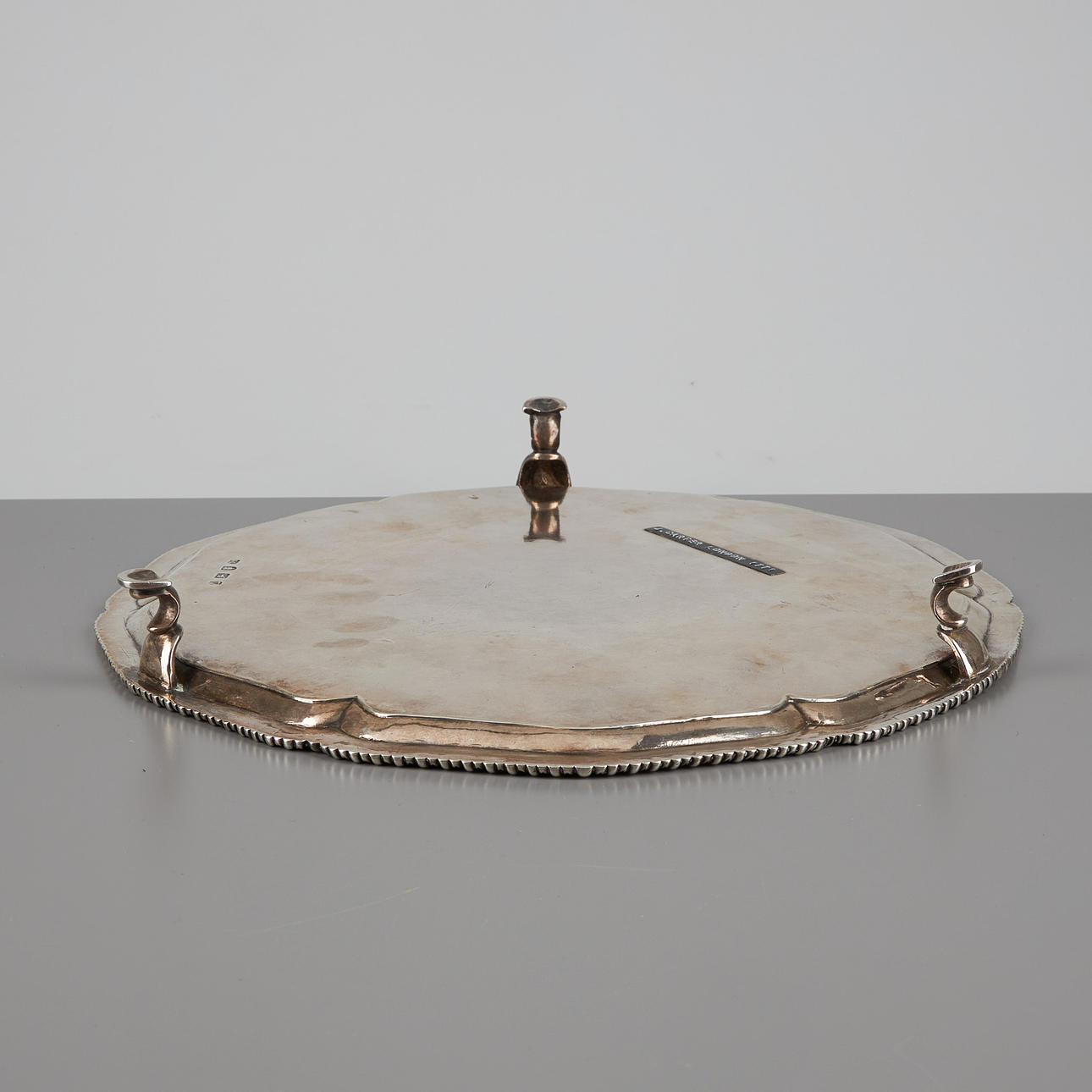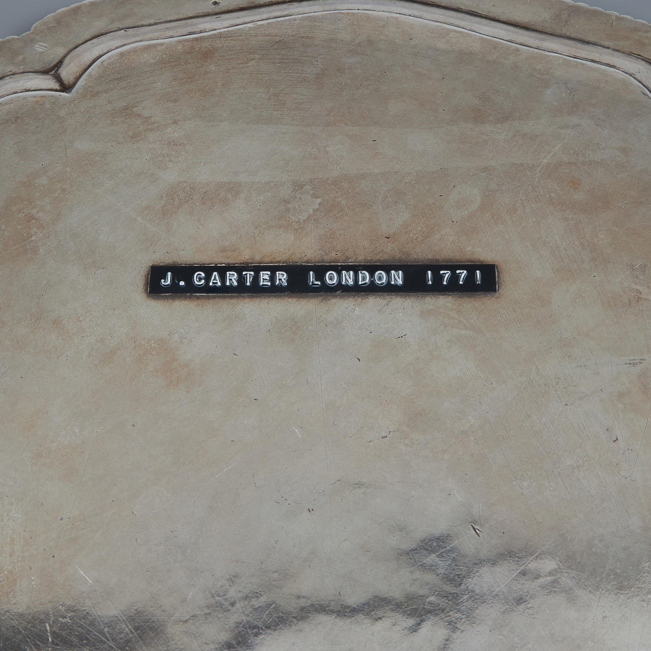 Ein silbernes Tablett von J. Carter, London 1771.