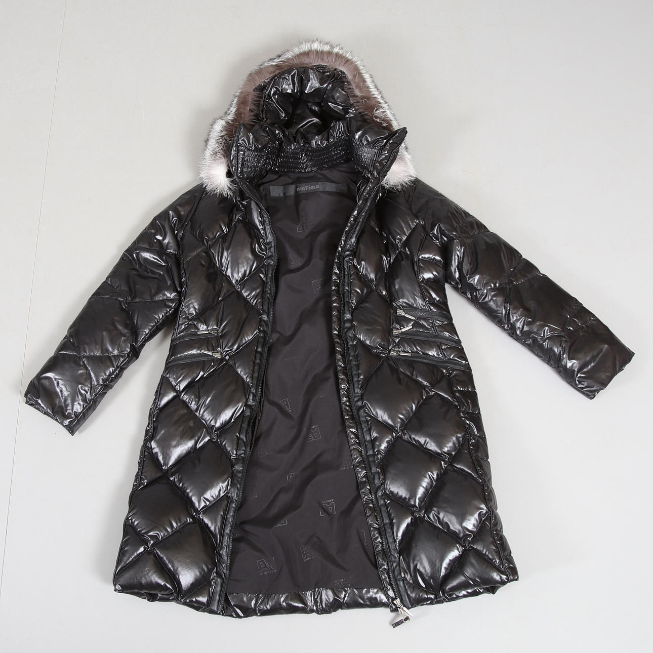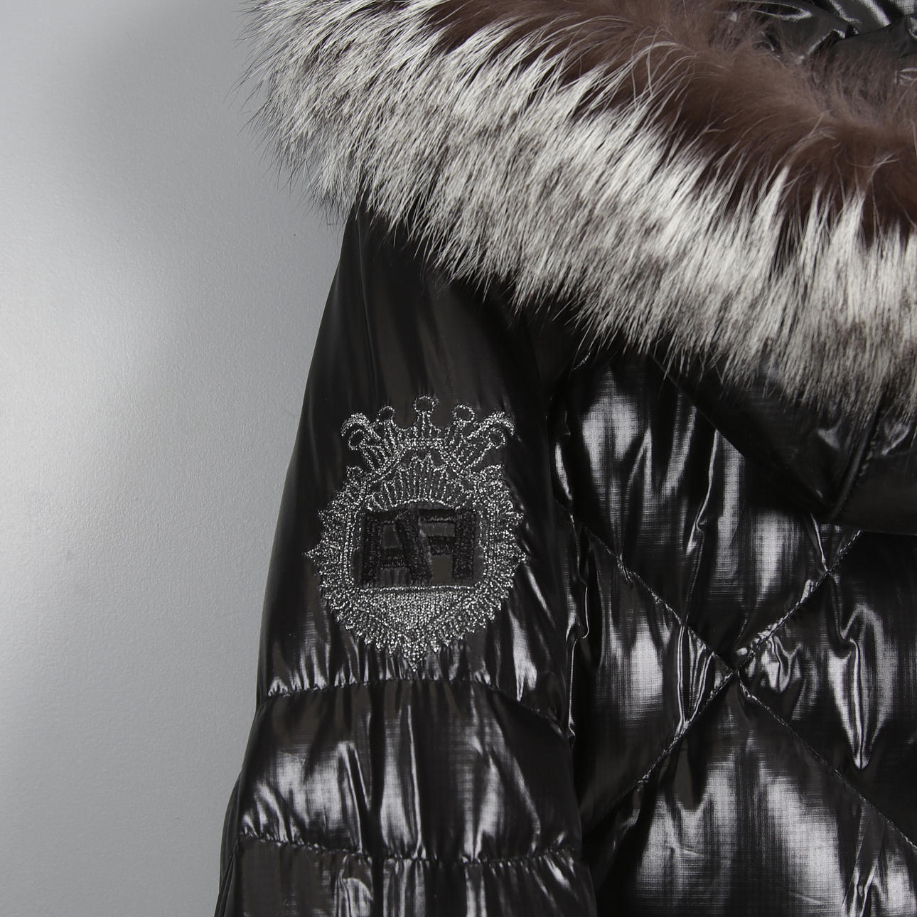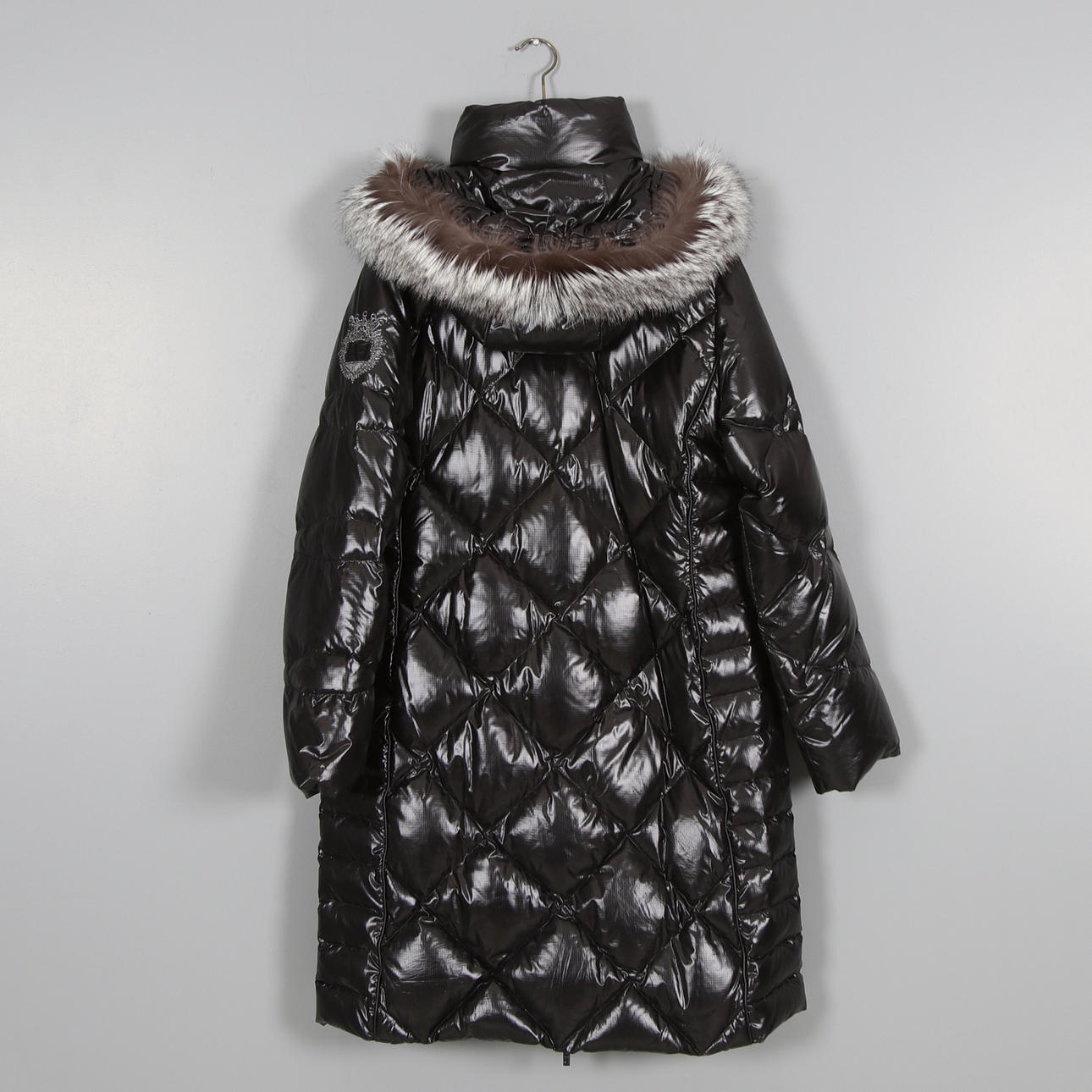 Das mit Daunen gepolsterte Kapuschon ist mit Fell gefüttert und abnehmbar.