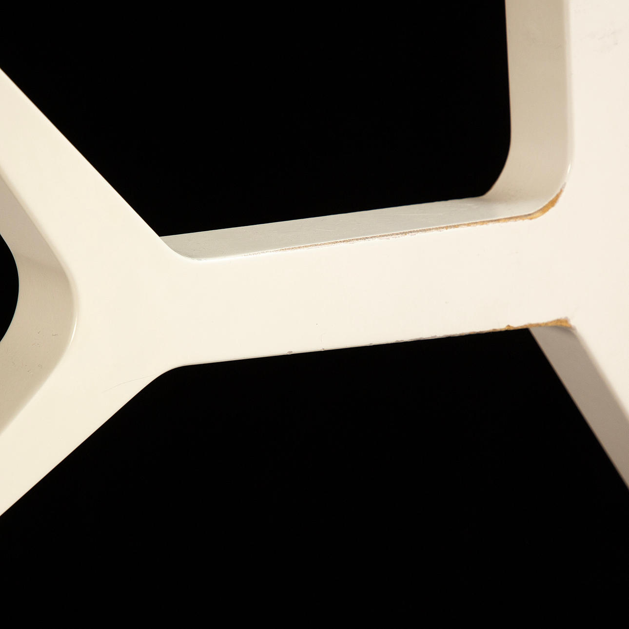 Weiß lackiertes MDF, beschriftet.