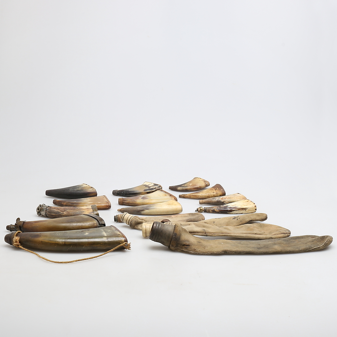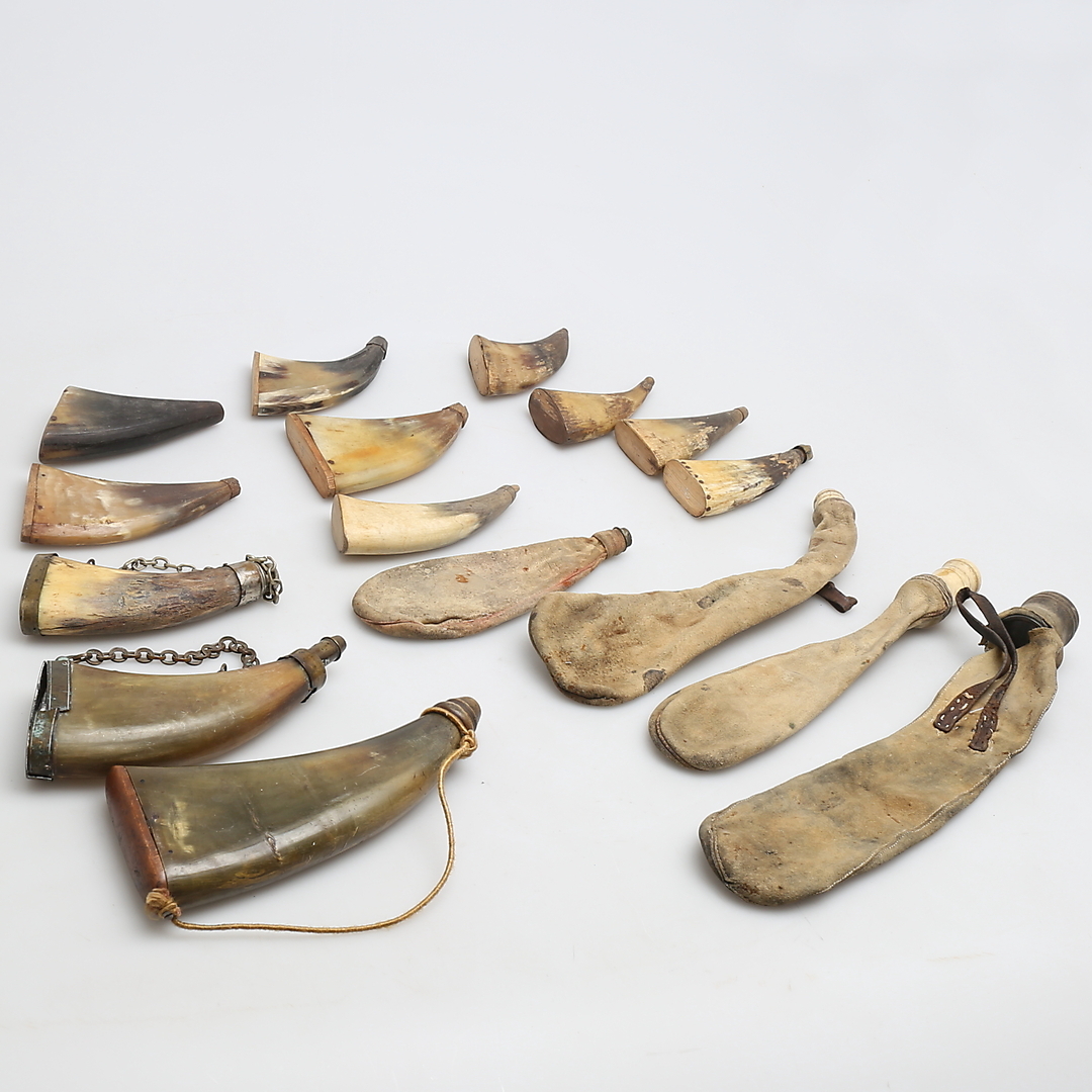 314277. Ein Menge, Pulverhorn- und Schrottaschen, 16-tlg.