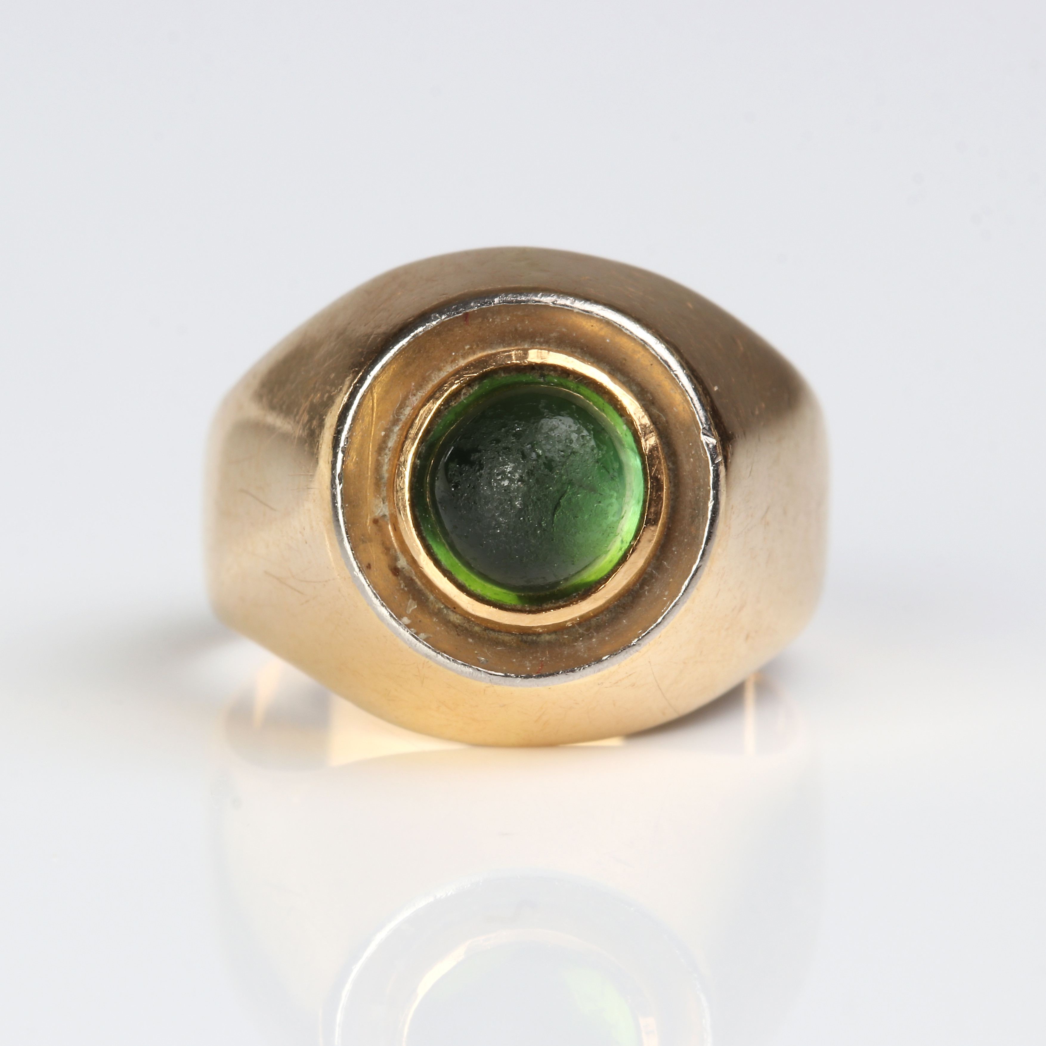 3144861. GOLDRING MIT GRÜNEM STEIN.