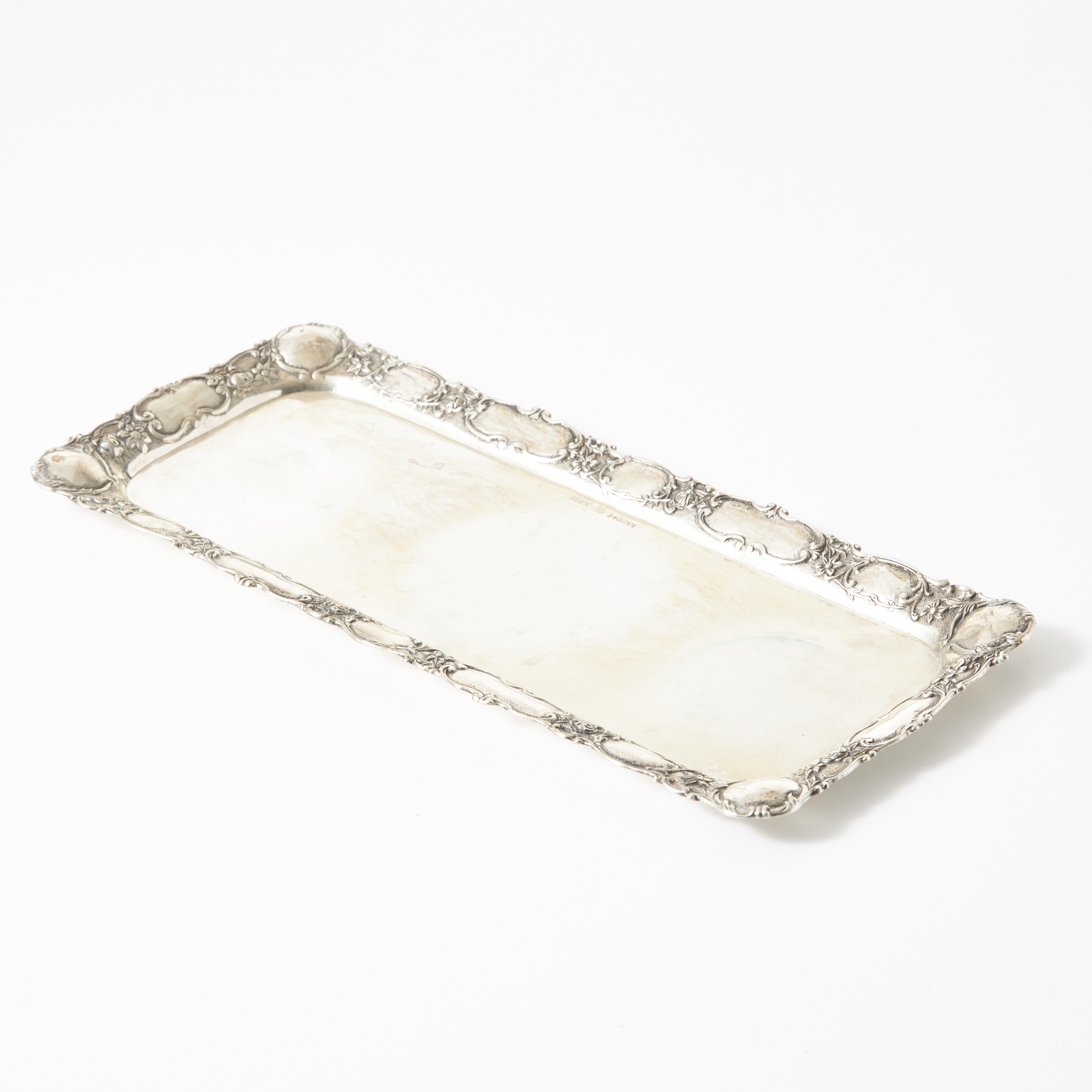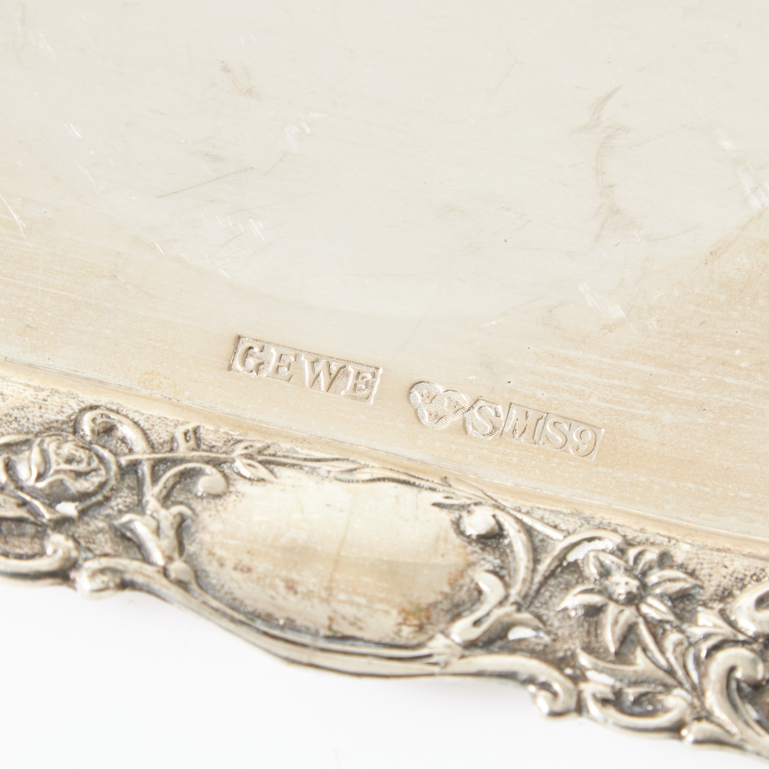 3145604. Serviertablett, Rokokostil, Silber, Reliefrand, GEWE, Malmö 1968.