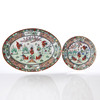 Porzellan mit polychromem Dekor, unten markiert. China, 20. Jahrhundert. Ca. 31x22 oder 17,5 cm Durchmesser.