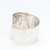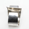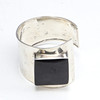 Breiter Armreif mit eingelegtem, quadratischem schwarzen Obsidian. Mit 925er-Prägung. Die Höhe des Armbands liegt zwischen 2,5 — 4,7 cm, der Innendurchmesser etwa 5,2 cm. Ist in der offenen Schiene leicht verstellbar. Der Stein misst etwa 3 x 3 cm.