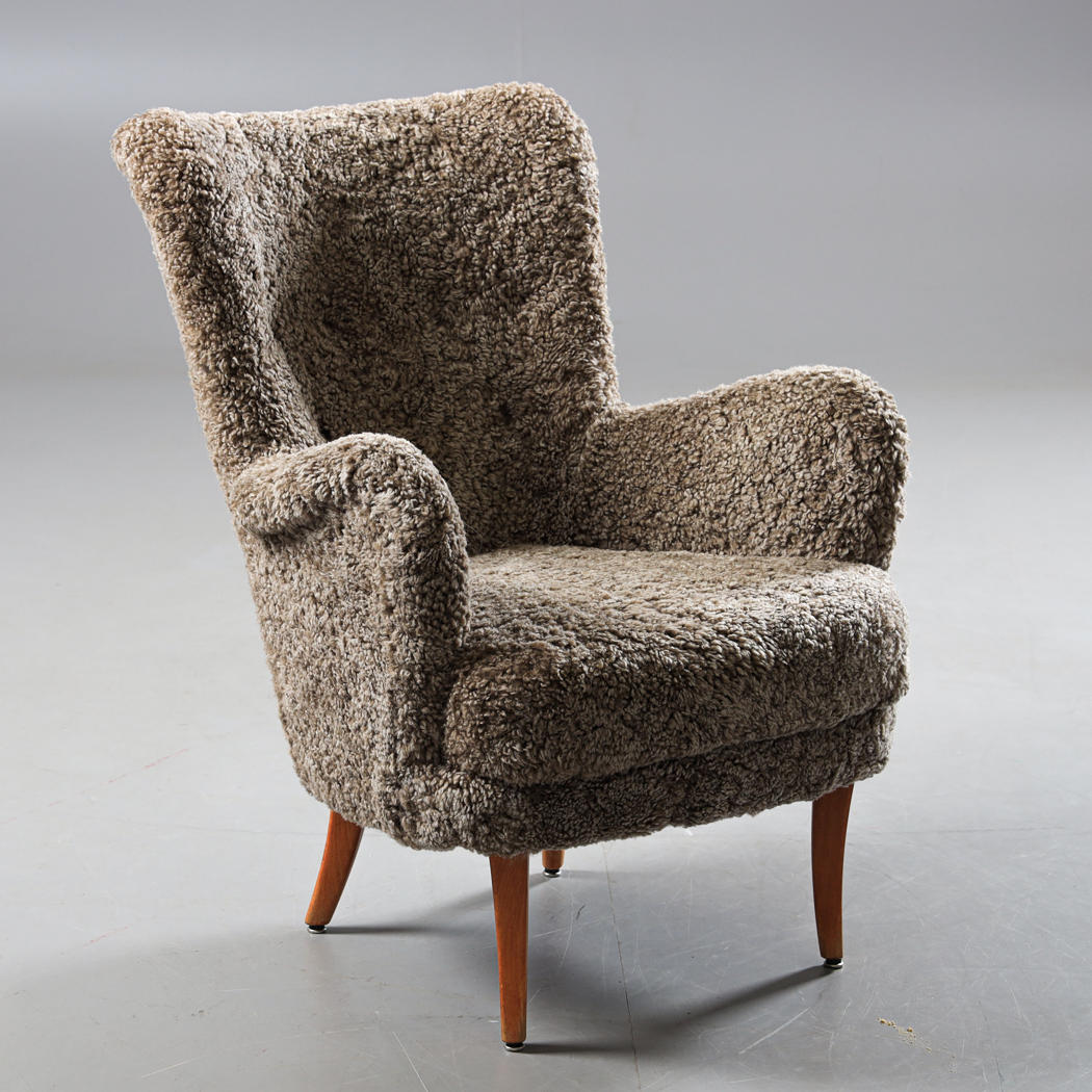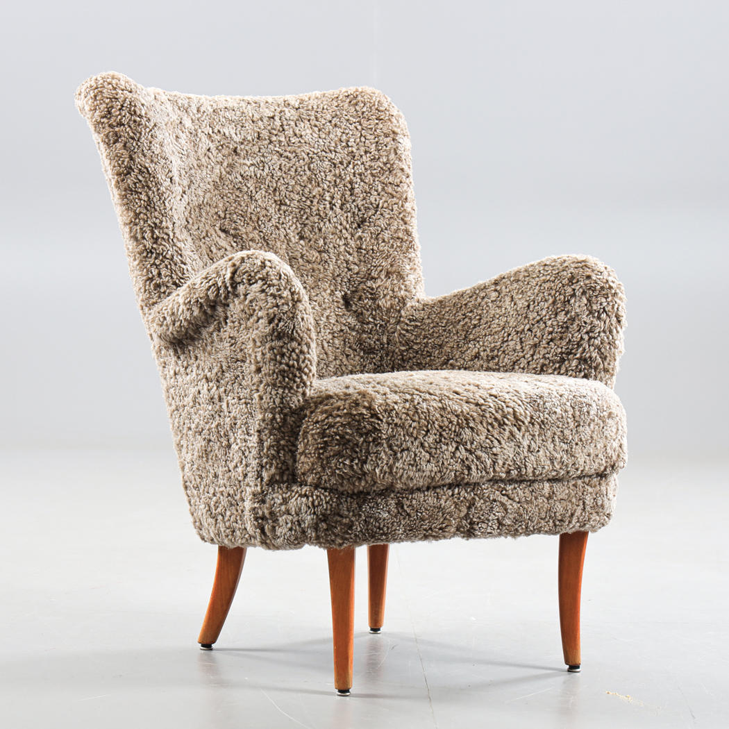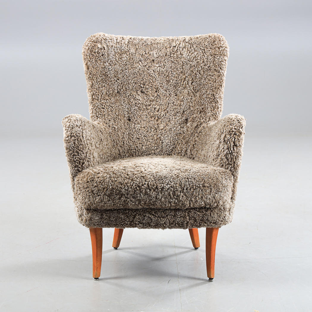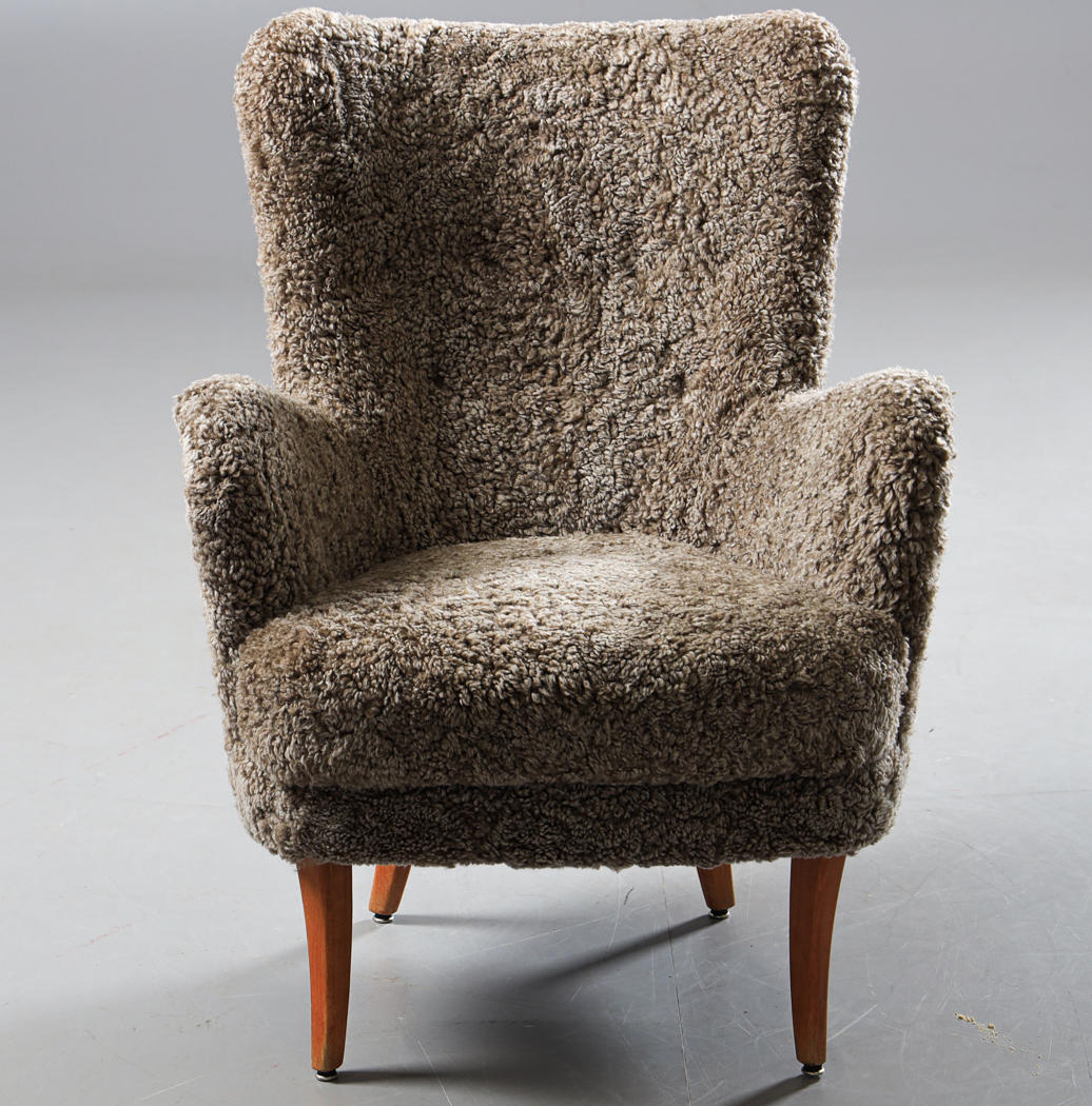 3153357. Ein Sessel aus Lammfell aus den 1940er Jahren.