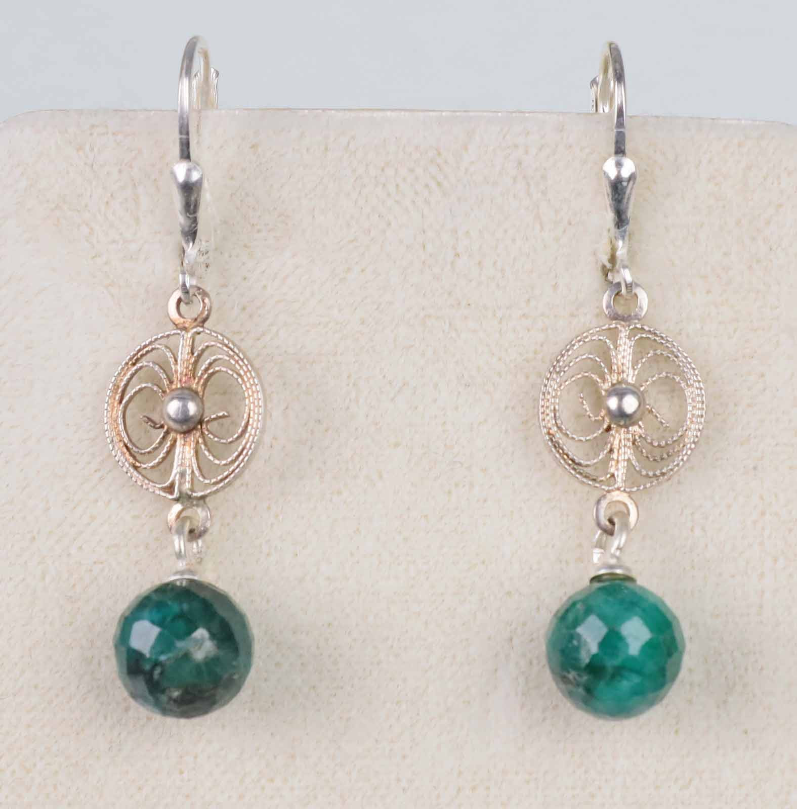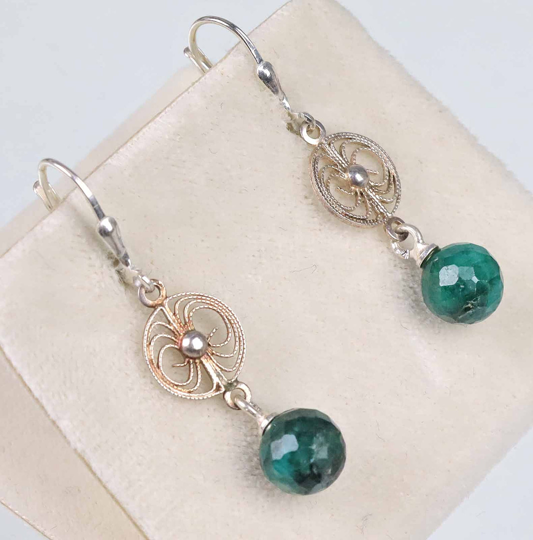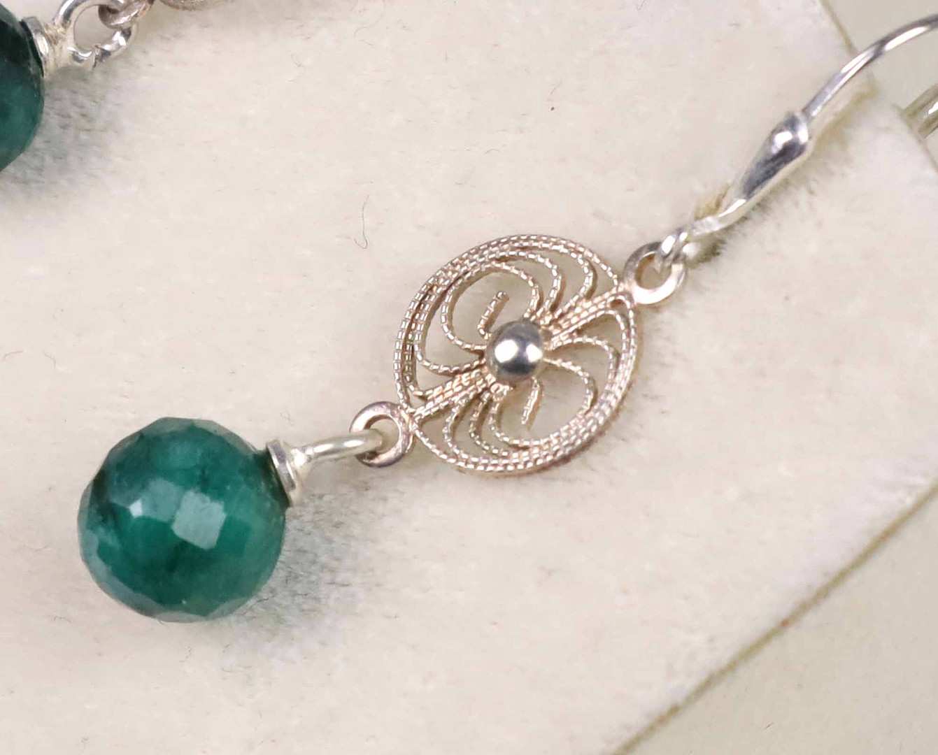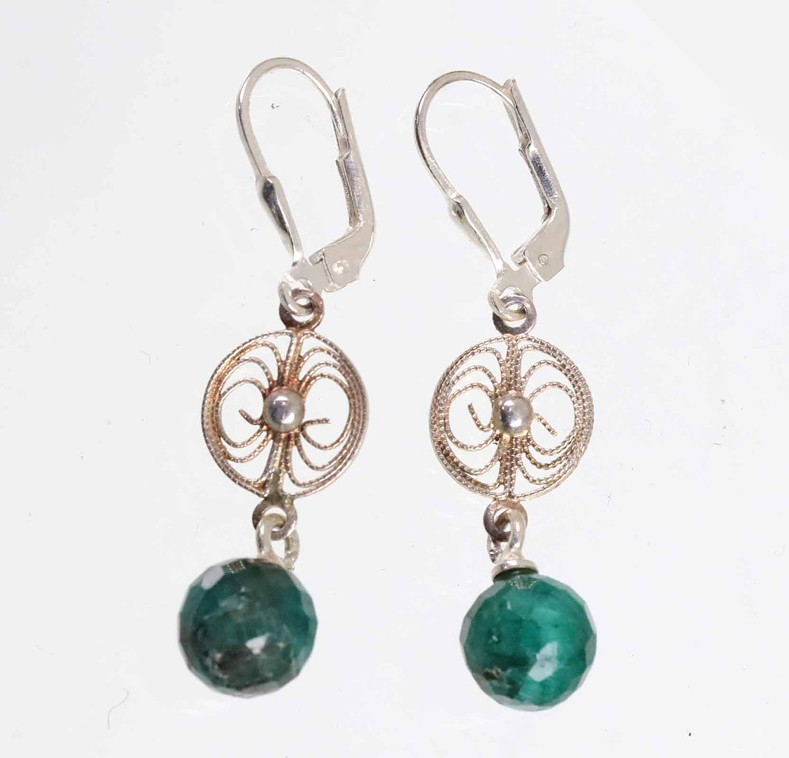 3158118. FILIGRAN SMARAGD OHRRINGE, SILBER.