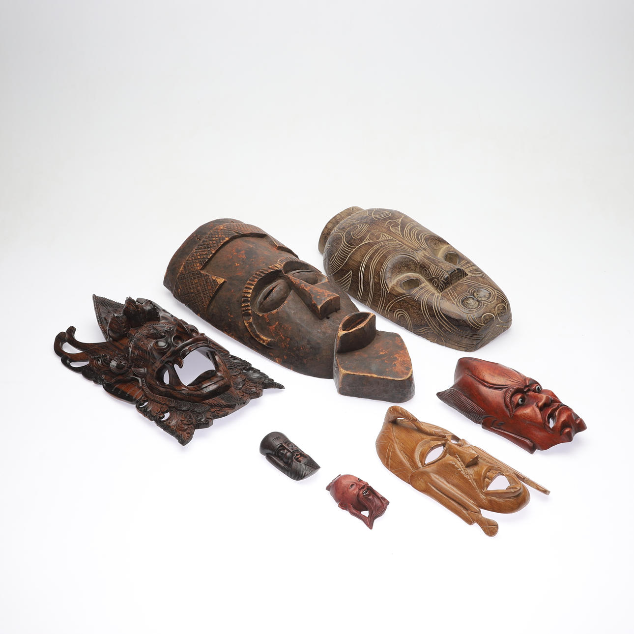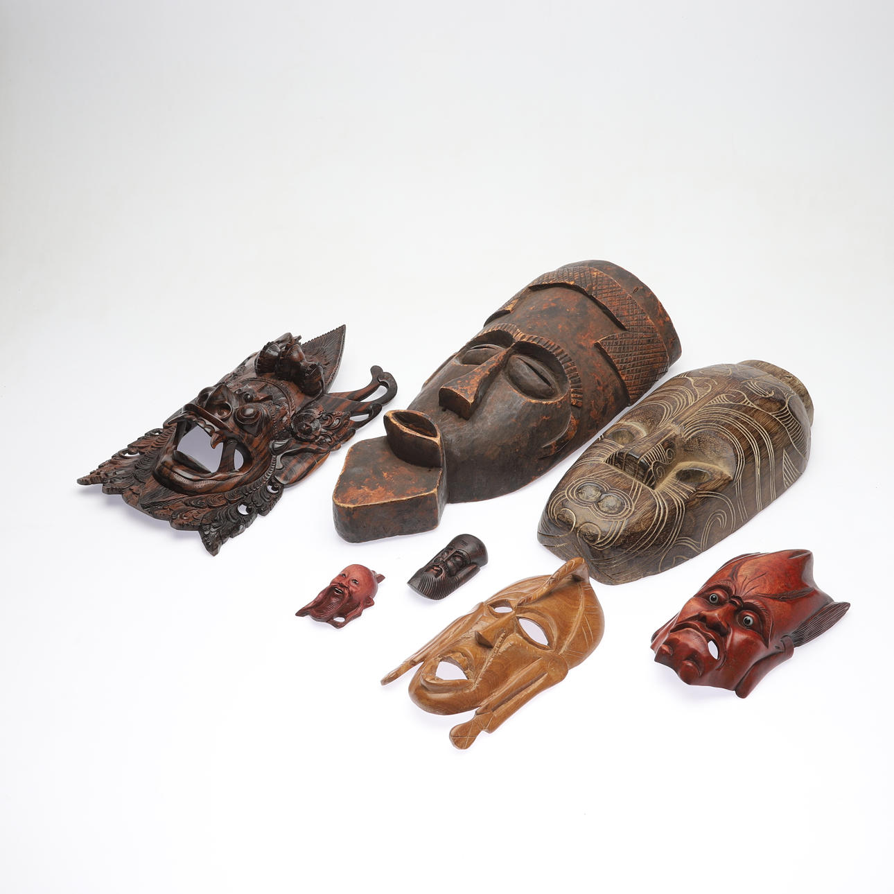 7 Holzmasken, Afrika, 20. Jahrhundert.