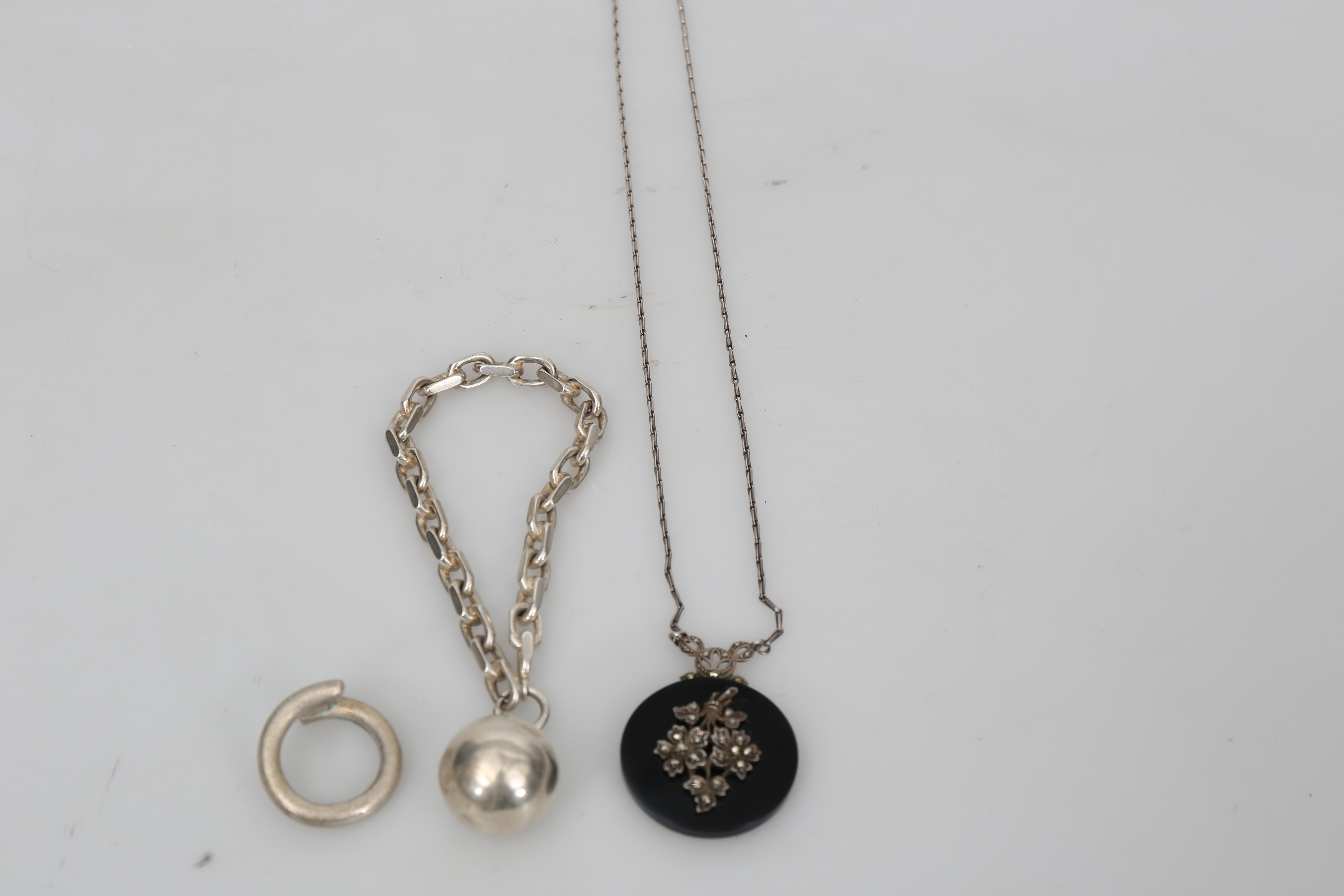 316621. SCHMUCK, Silber und Markasit, 3 Stück.
