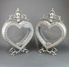 Ein Paar ungewöhnlicher herzförmiger Sturmlaternen aus versilbertem Metall und Glas, H. 53 cm.