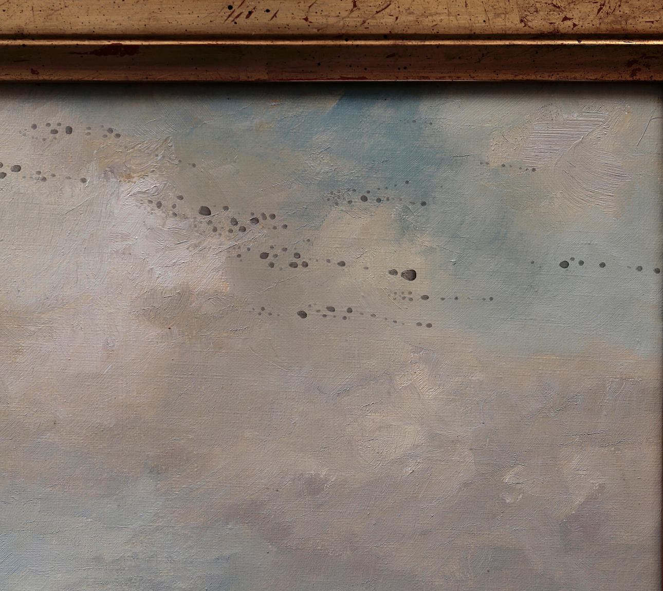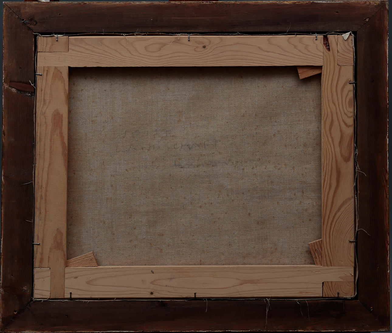 Leichte Fehlstellen, vor allem am oberen rechten Rand. Rahmen aus geformtem und vergoldetem Holz.