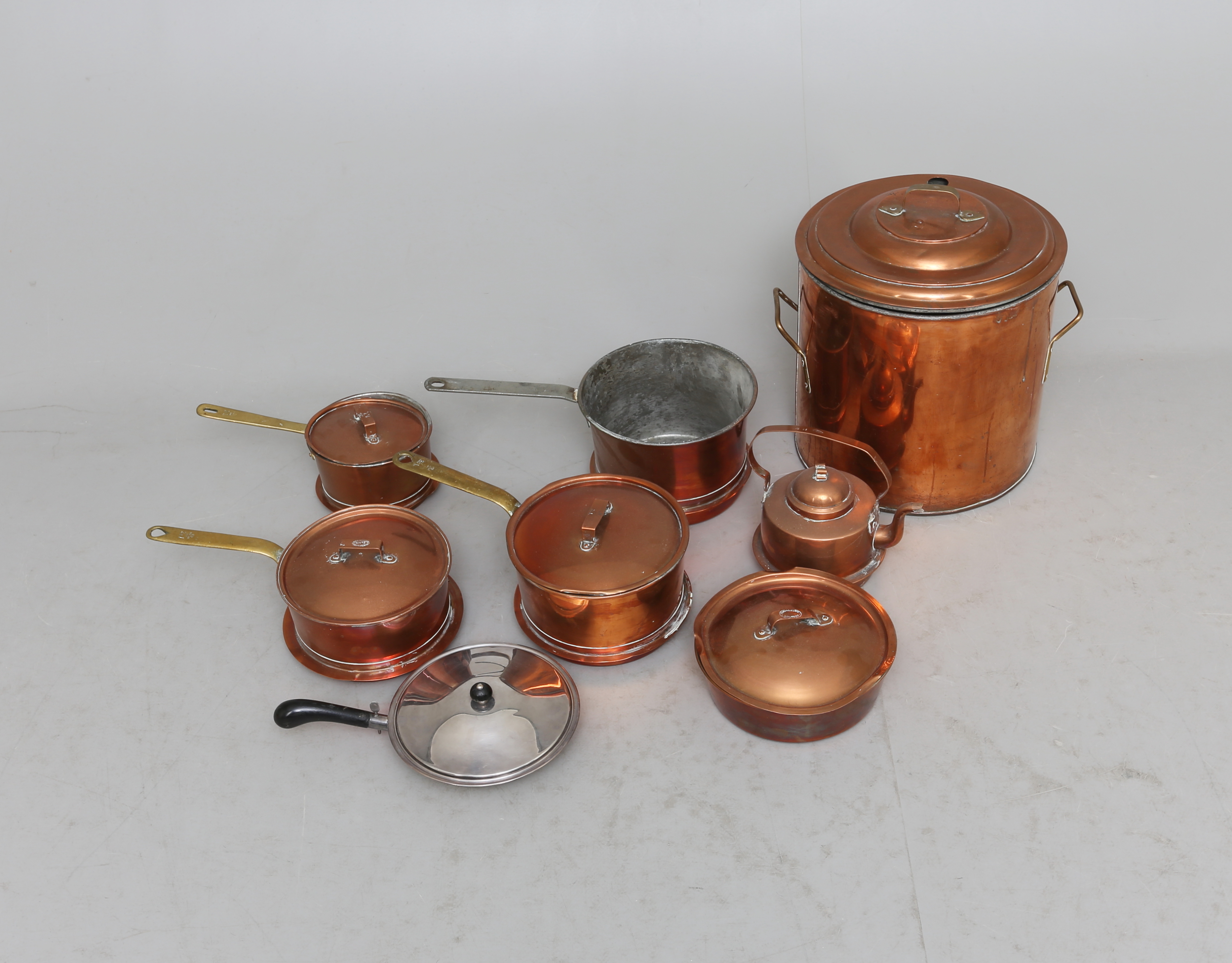 317281. KUPFEROBJEKTE und WEISSMETALL, 8 Teile.