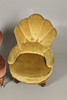 beide mit muschelförmigen Knopflehnen an Mahagoni-Rahmen, gedrehten Vorderbeinen und Keramikrollen, der größere grüne Stuhl ist 79 cm hoch, 57 cm breit.