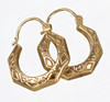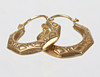 punziert Gelbgold 333 (8 Karat), Kreolen in 7-fach facettierter Rundform, fein gravierte Oberfläche, Ø ca. 2 cm, Länge mit Ohrbügel ca. 2,5 cm, ges. 2 Stück, Gewicht ca. 1,55 Gramm.