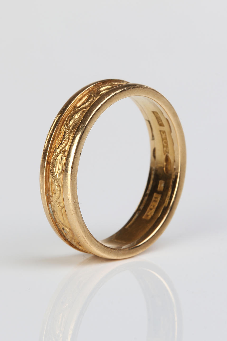 Goldring, aus zwei Ringen gegossen, einer mit 20 Karat geprägtem Gold, der andere mit undeutlichen Stempeln, mindestens 18 Karat Gold.