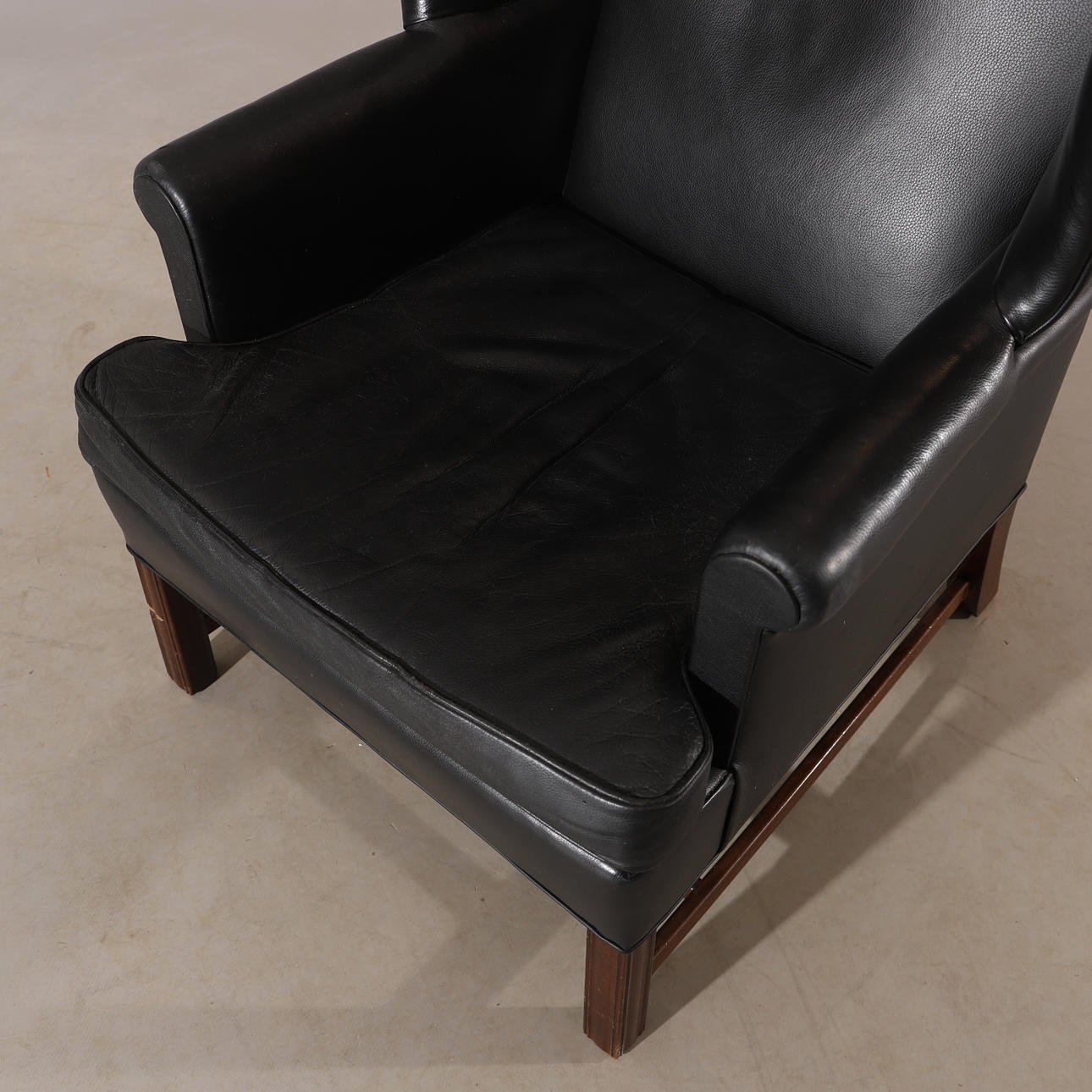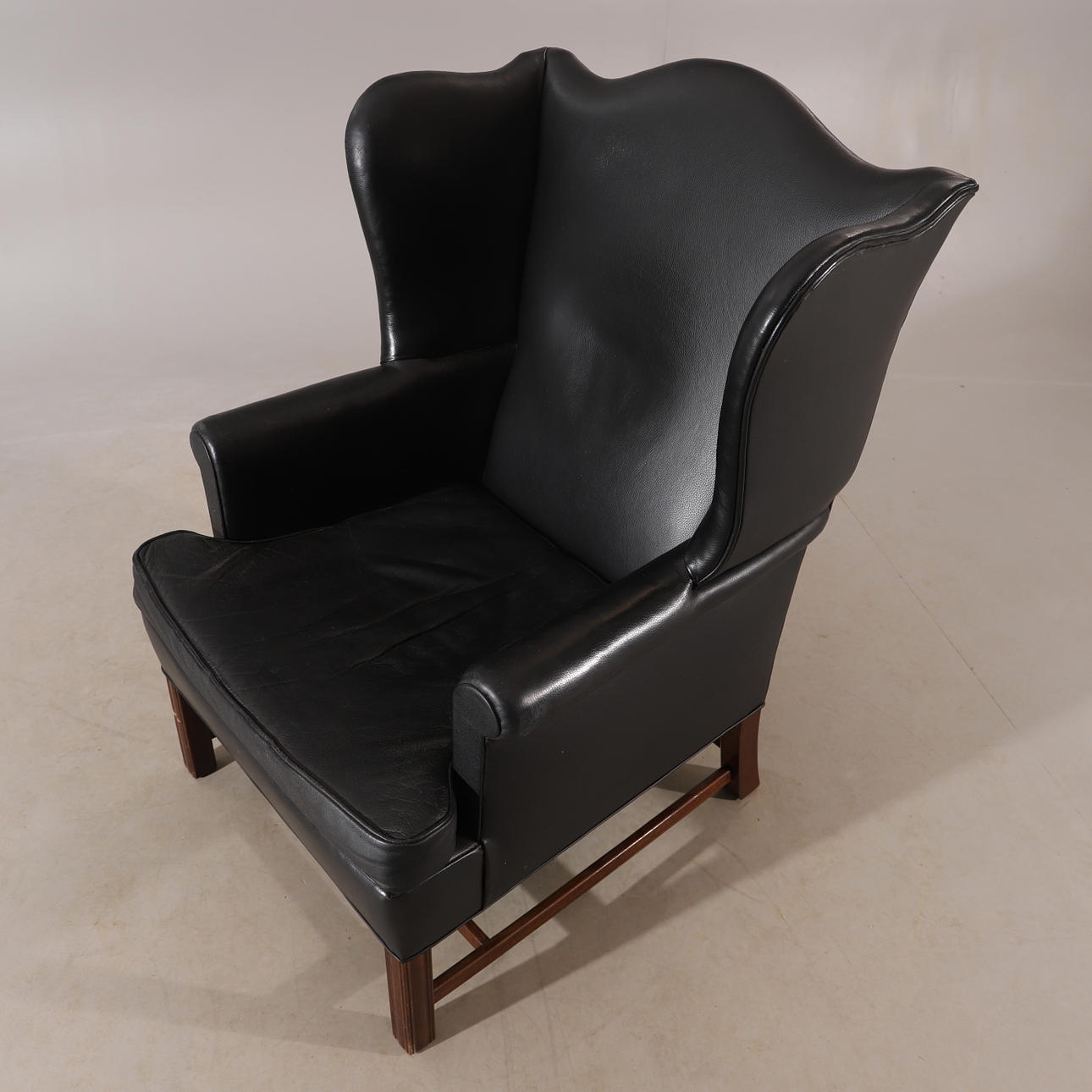 3196264. EARPATCH SESSEL, schwarzes Leder, englischer Stil.